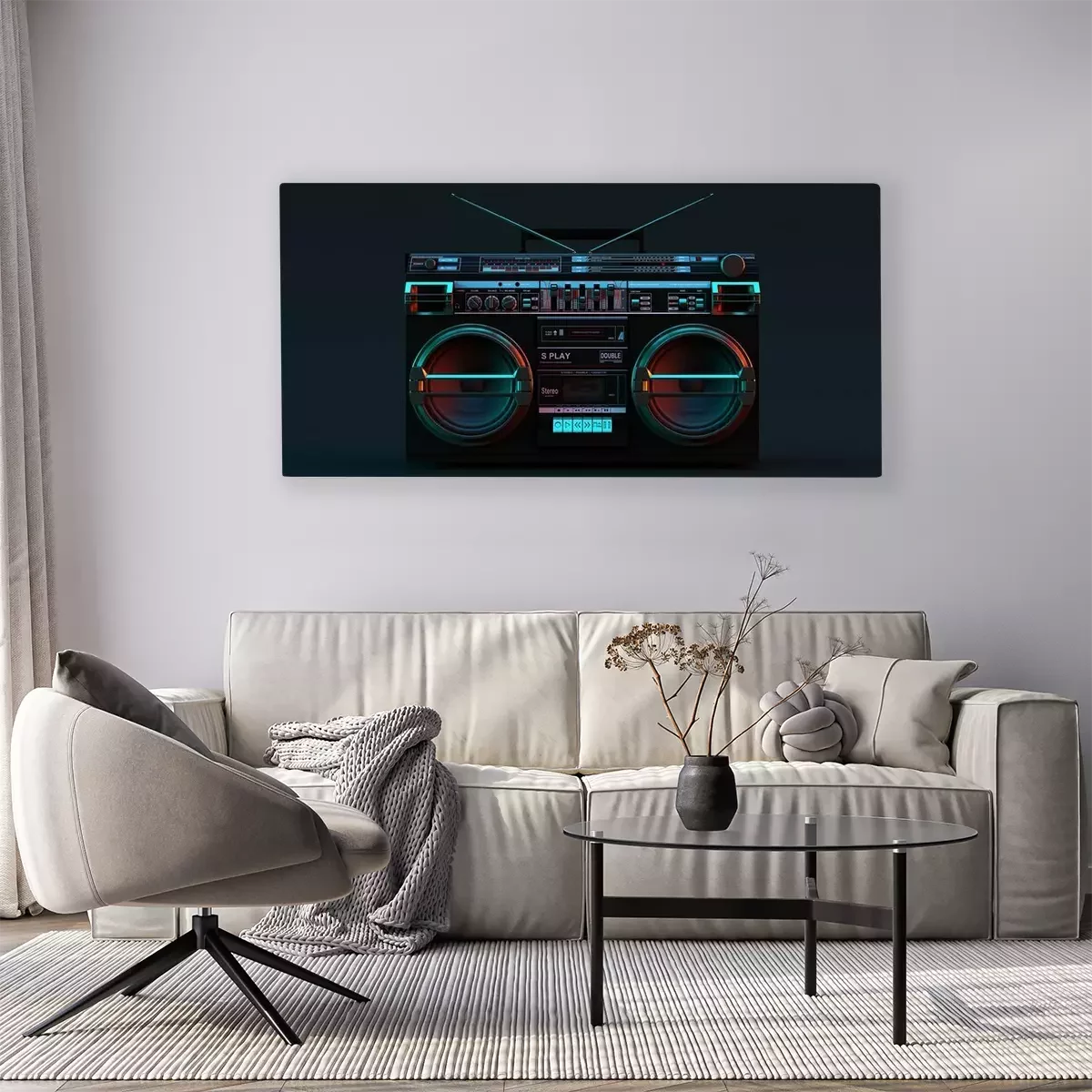 Boombox Moody 80s lighting 3d illustration