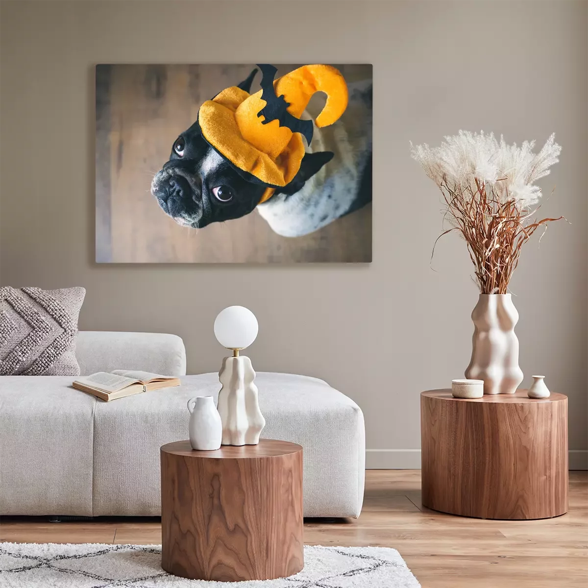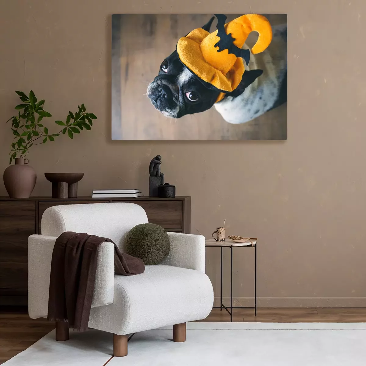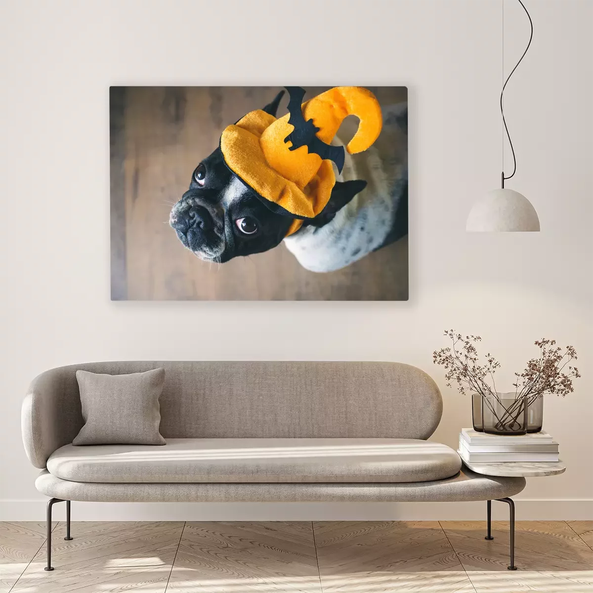 Tableau : Bouledogue français dans un chapeau