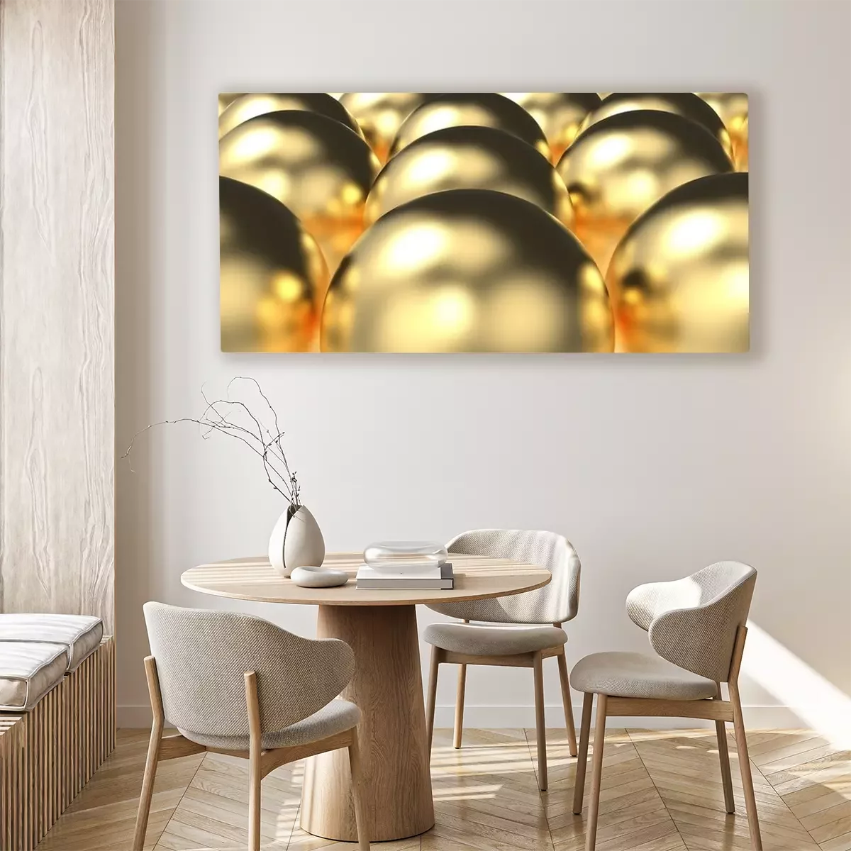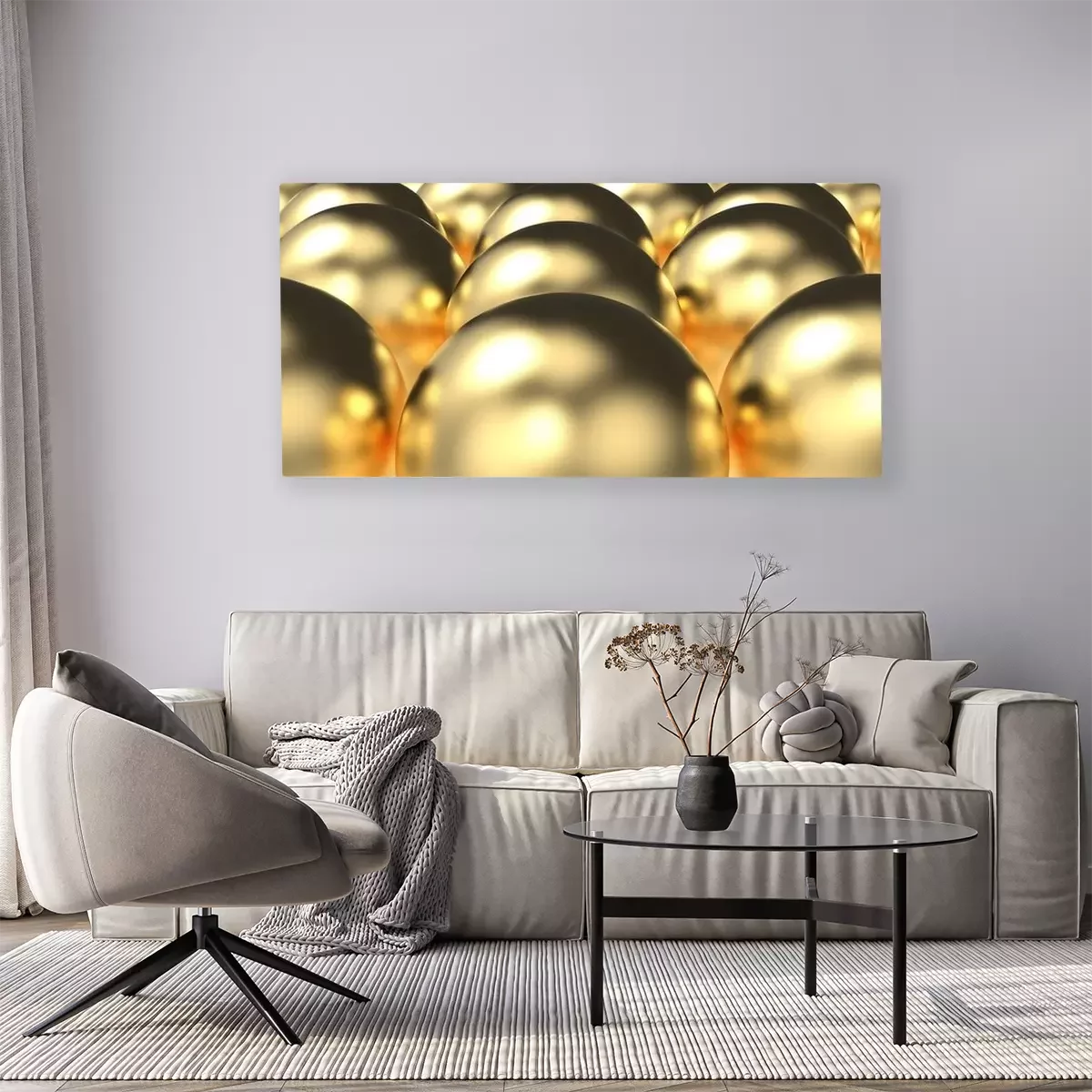 Tableau : Boules en métal doré