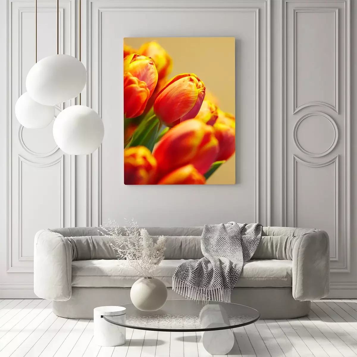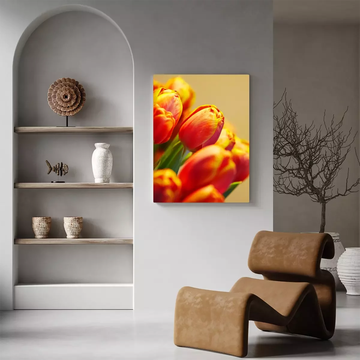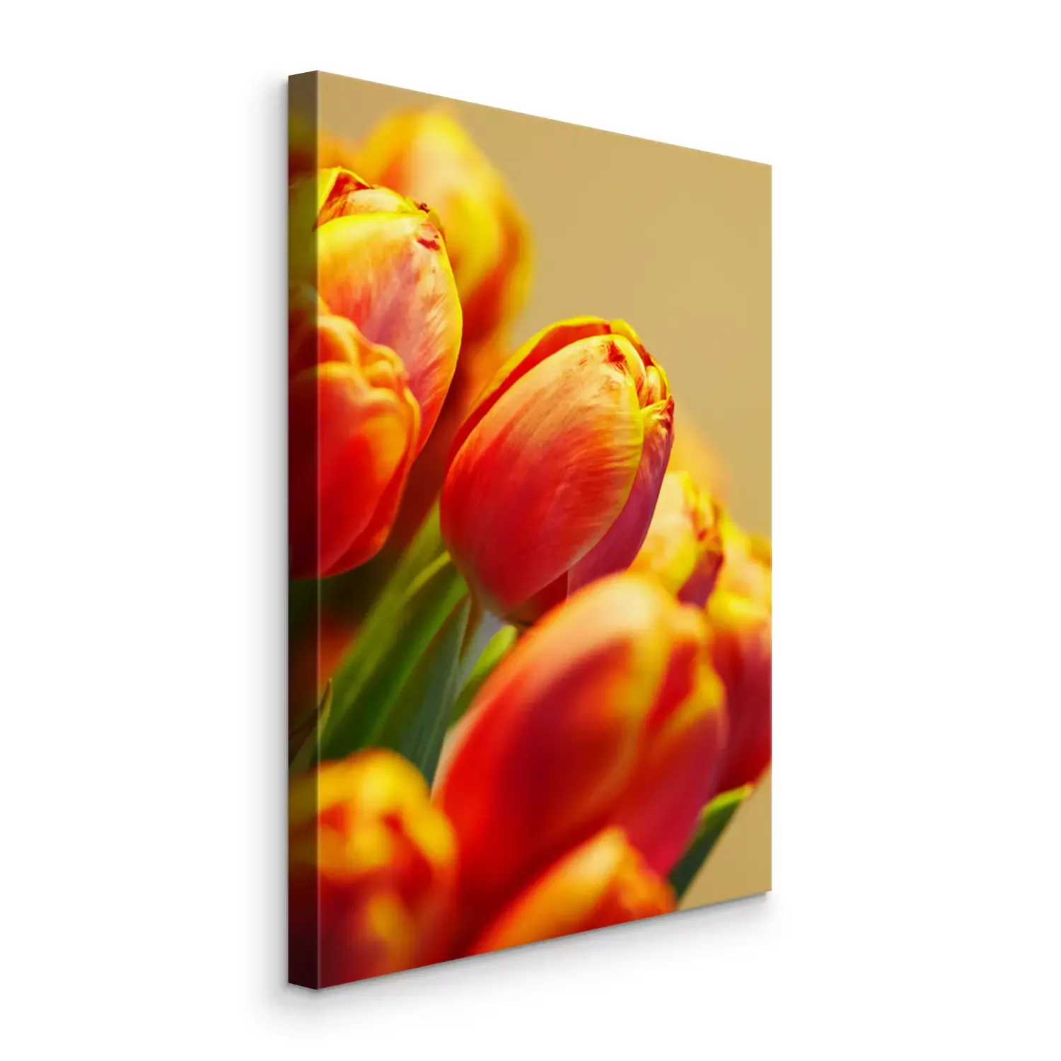 Tableau : bouquet de tulipes orange sur fond de la même couleur