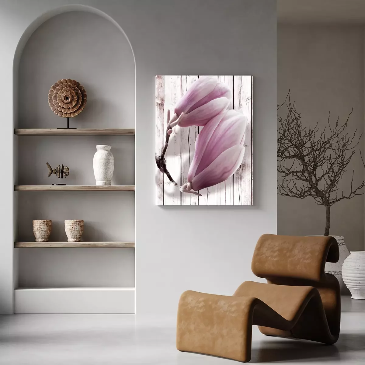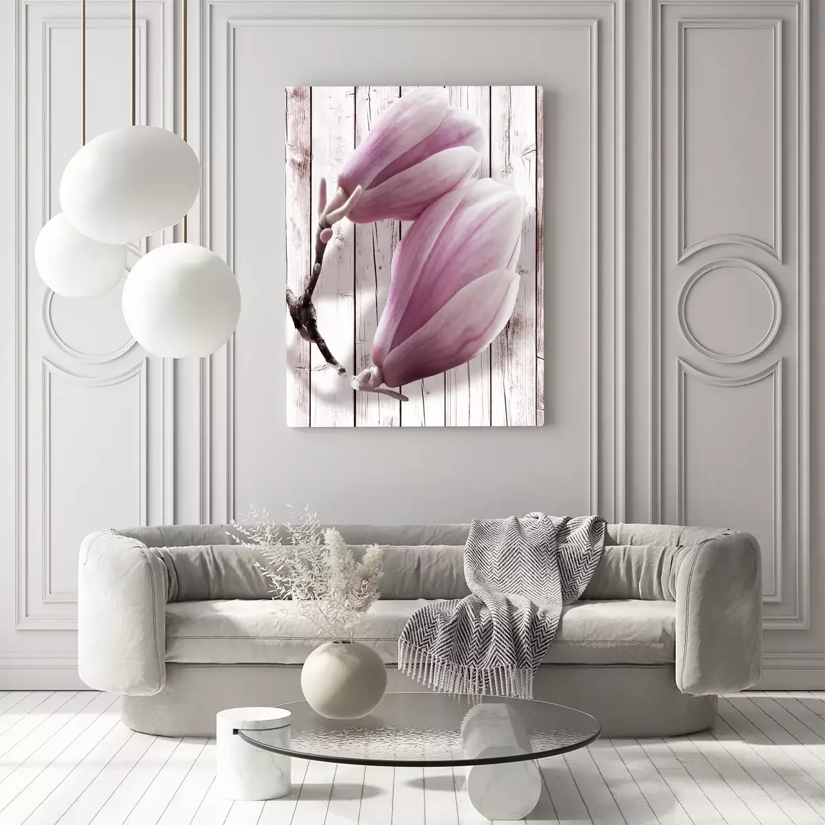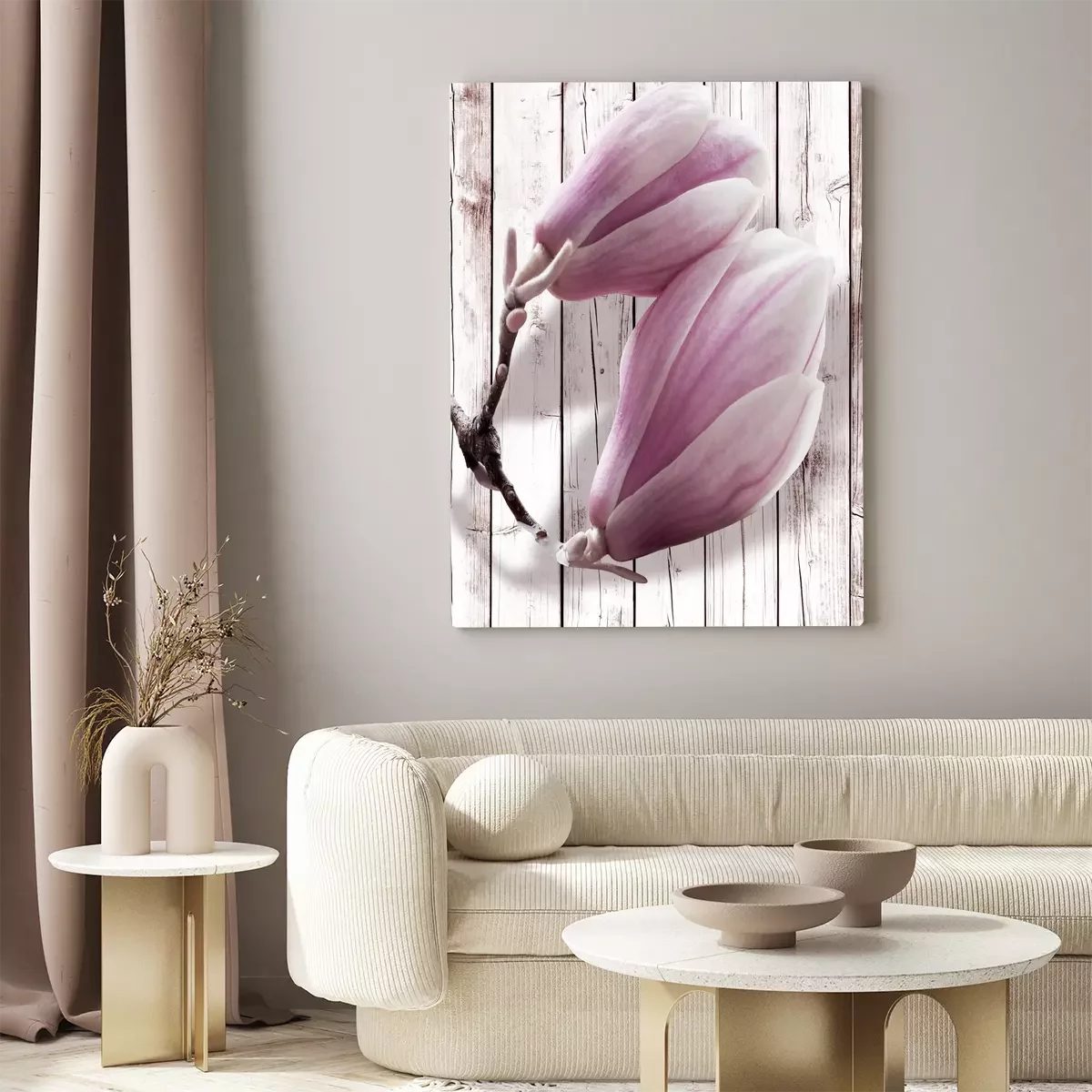 Bourgeons de magnolia sur fond de panneaux lumineux