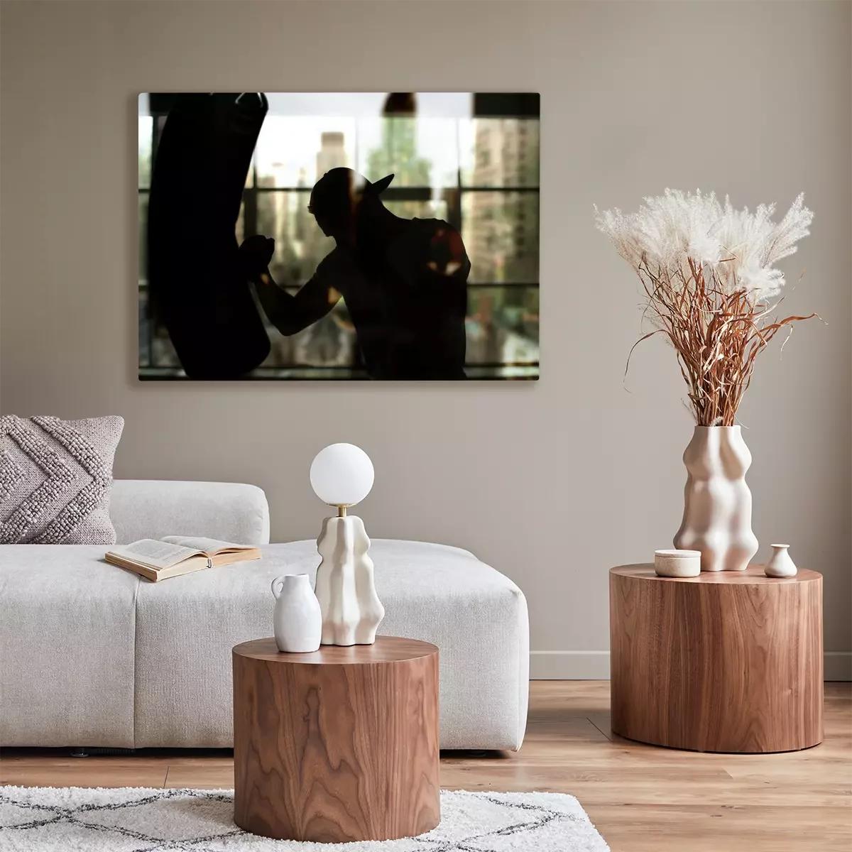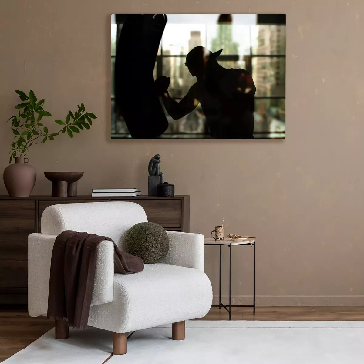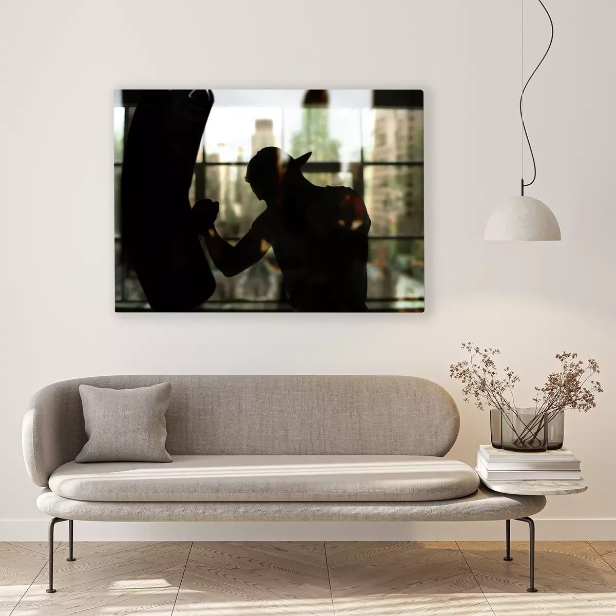 Tableau : Boxeur en entraînement sur un sac de frappe