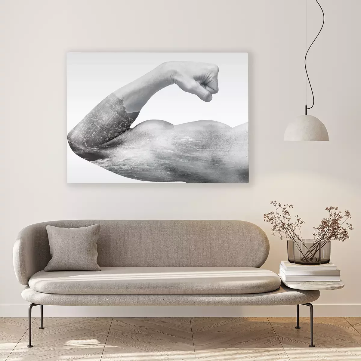 Tableau : Bras musclé et motif plage
