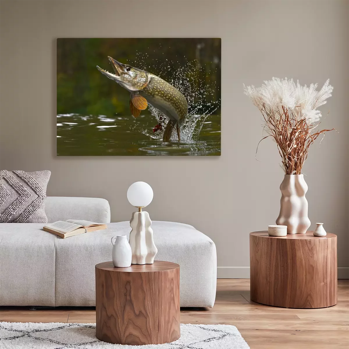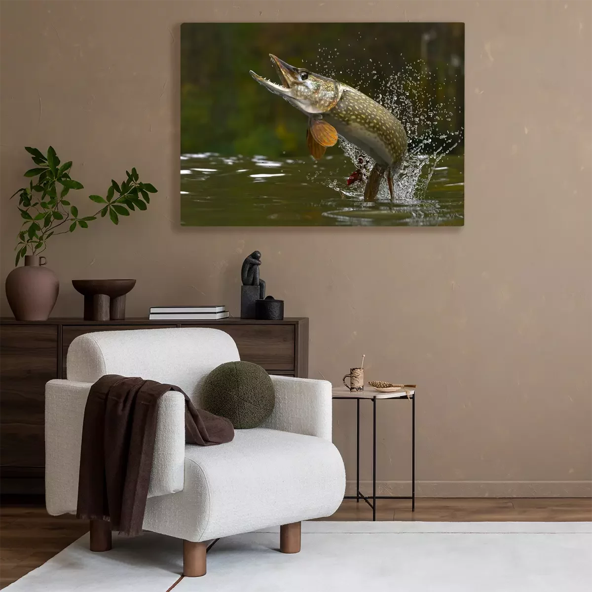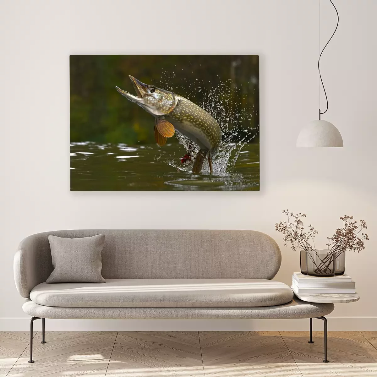 Tableau : Brochet qui saute hors du lac