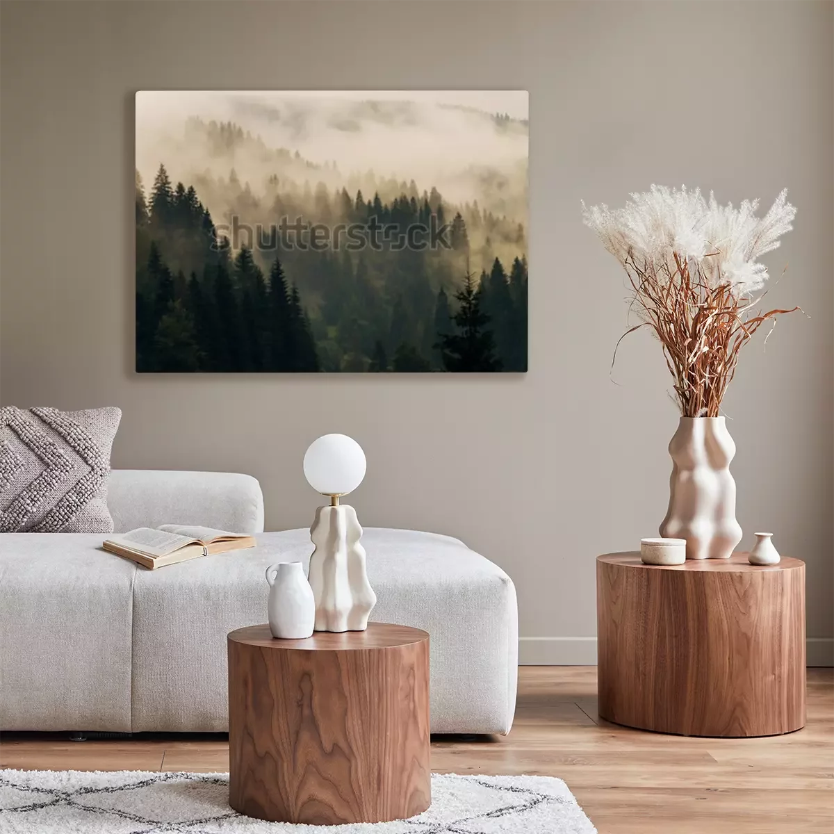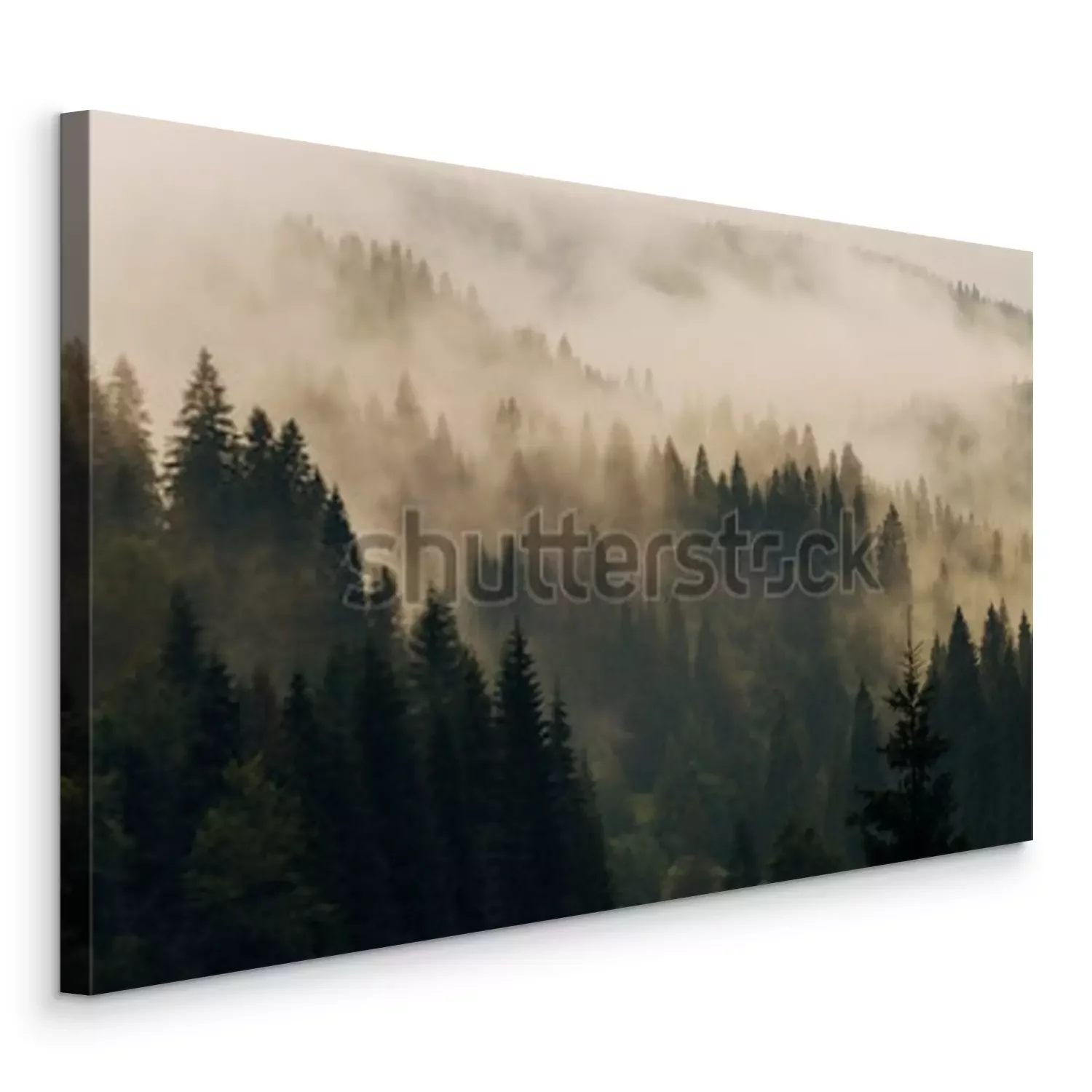 Tableau  Brouillard du matin sur les pentes de la montagne. Montagnes carpate. Ukraine, Europe.