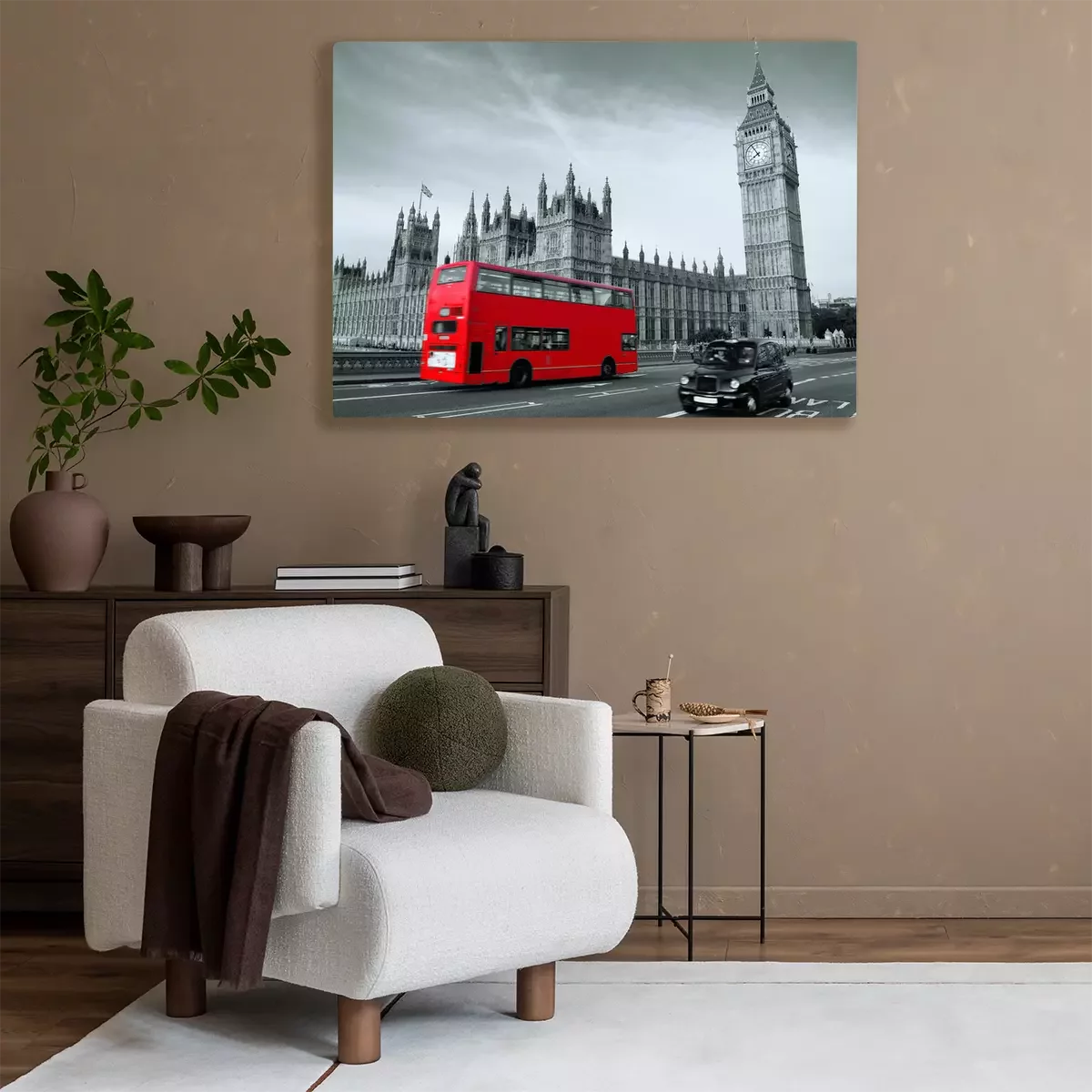 Bus rouge et Londres en gris