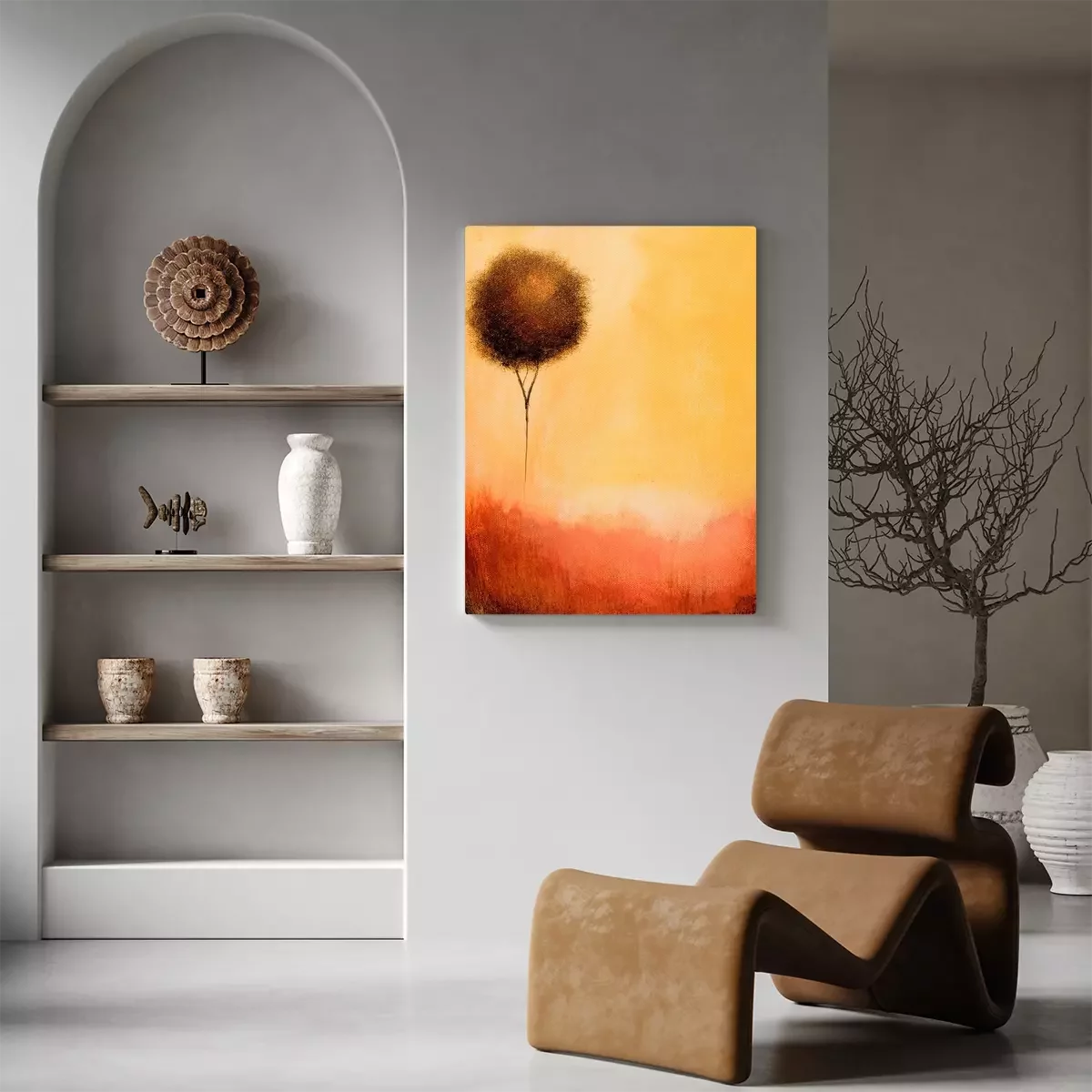 Tableau : C'est une peinture abstraite d'un arbre