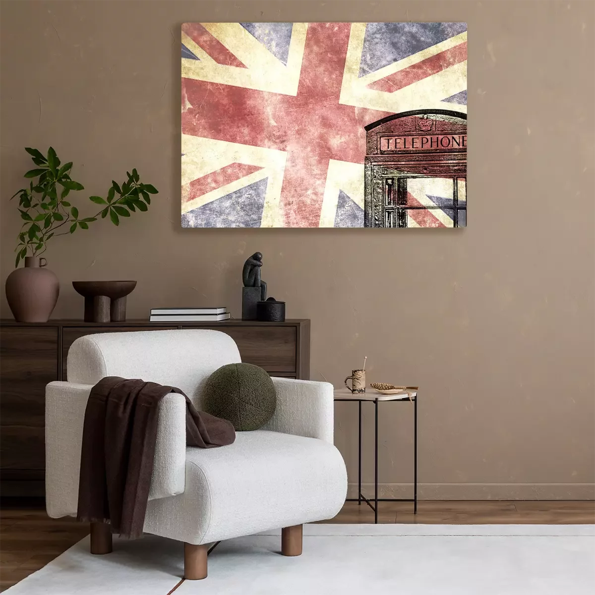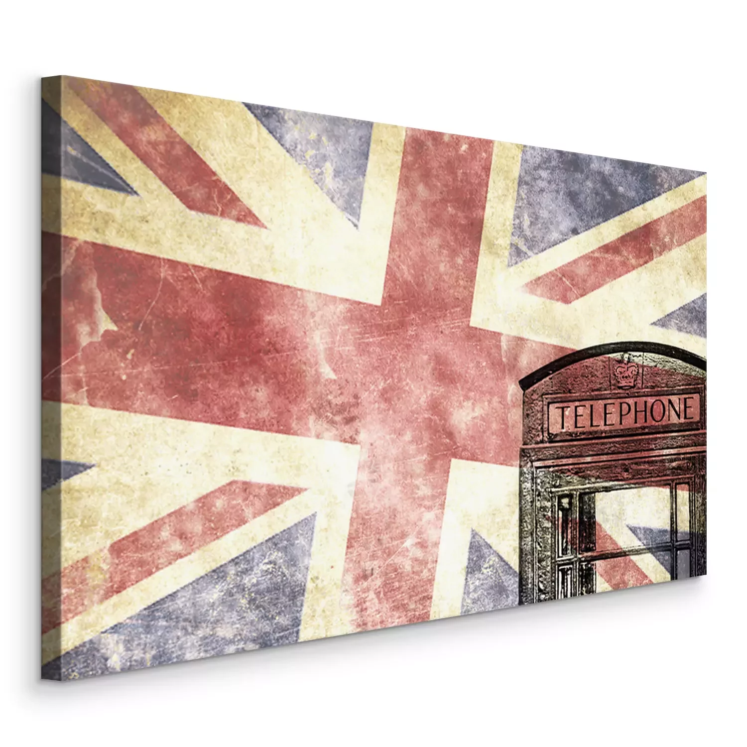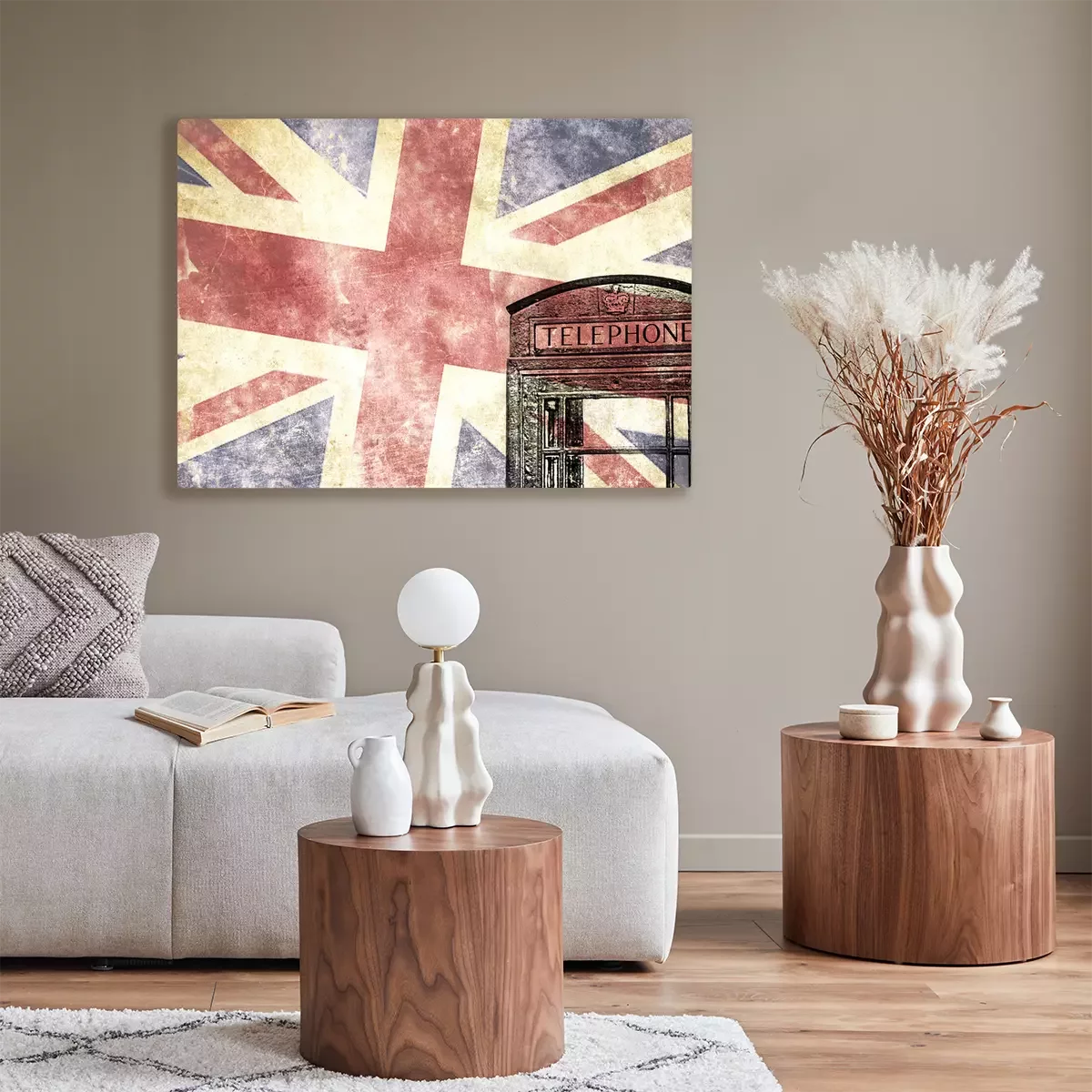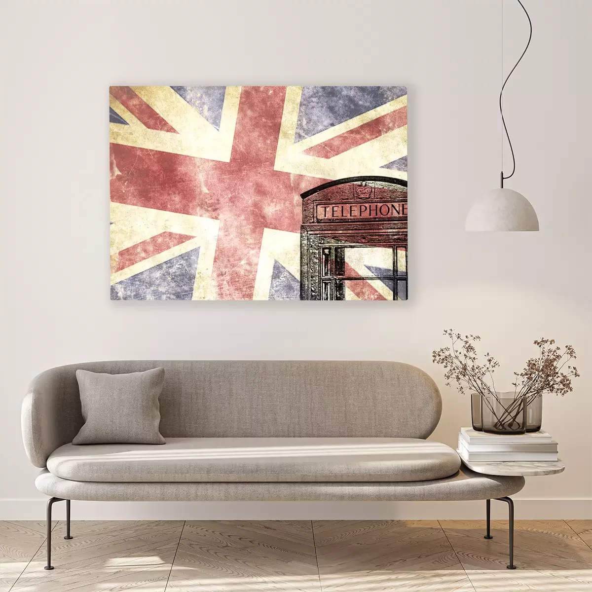 Tableau : Cabine de teléfonos, londres con la bandera Britanica