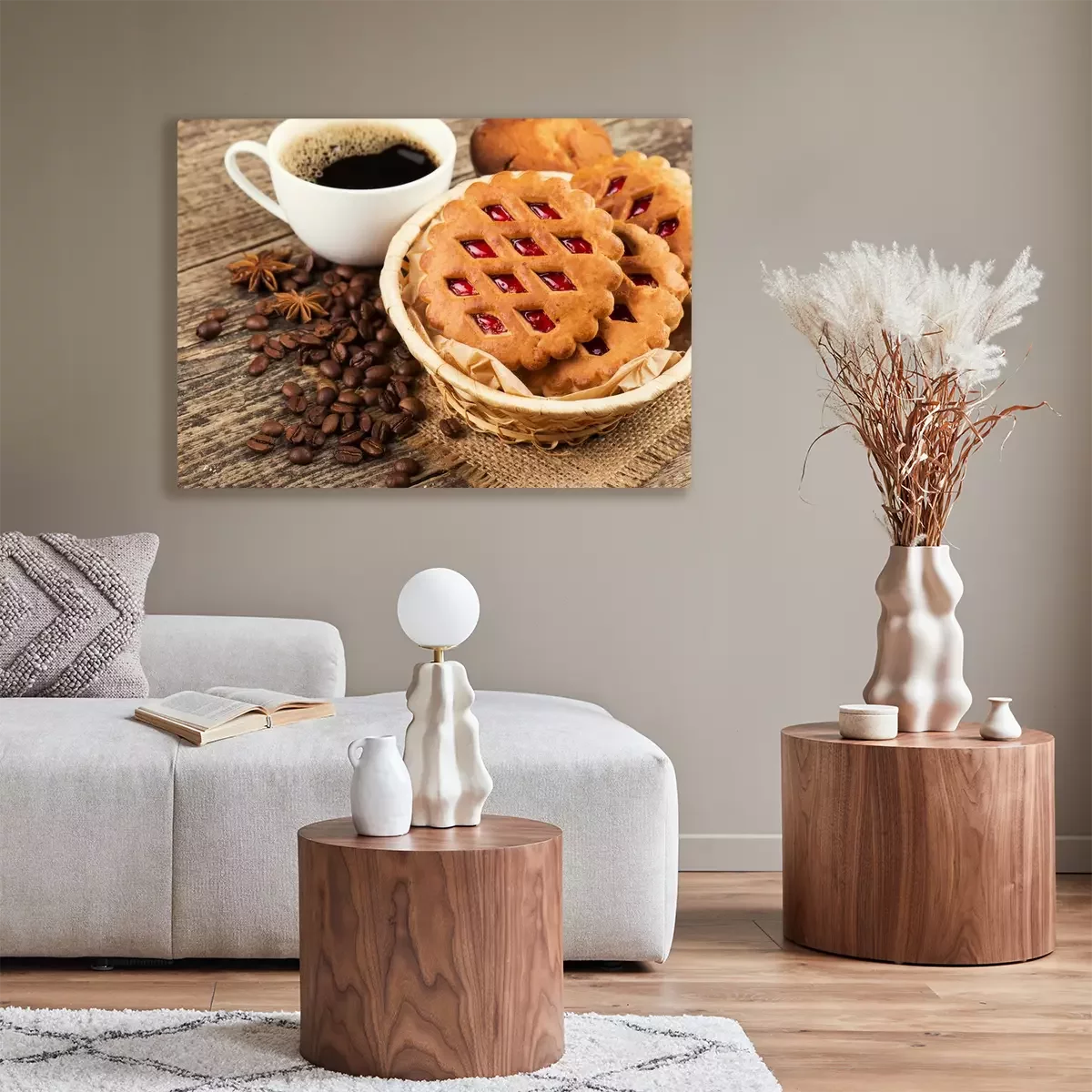 Tableau : Café noir et biscuits sur une table