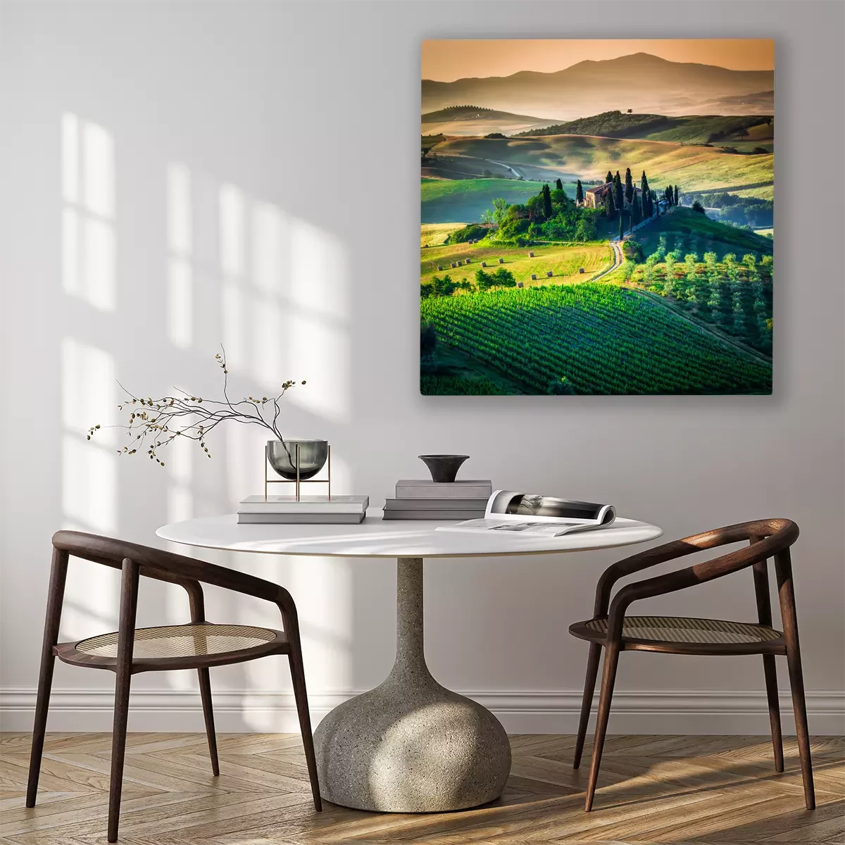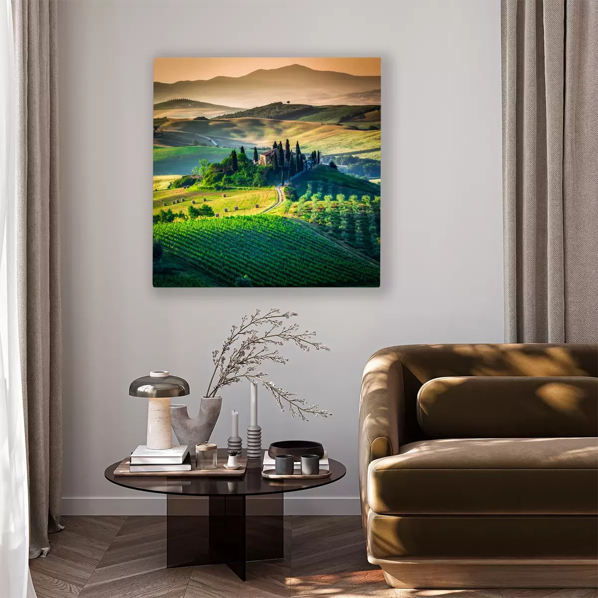 Toscane, Paysage et ferme dans les collines du Val d'Orcia