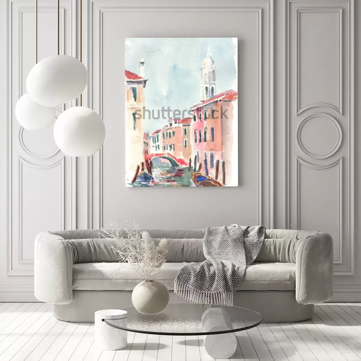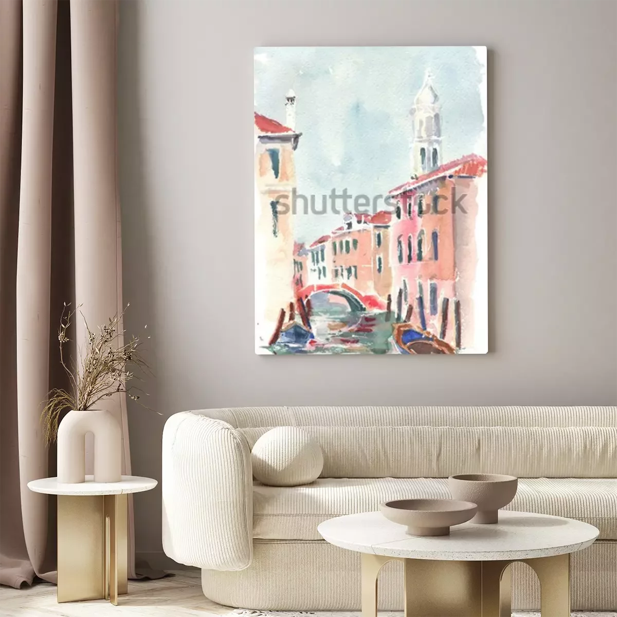 Tableau : Canal vénitien aquarelle minimaliste