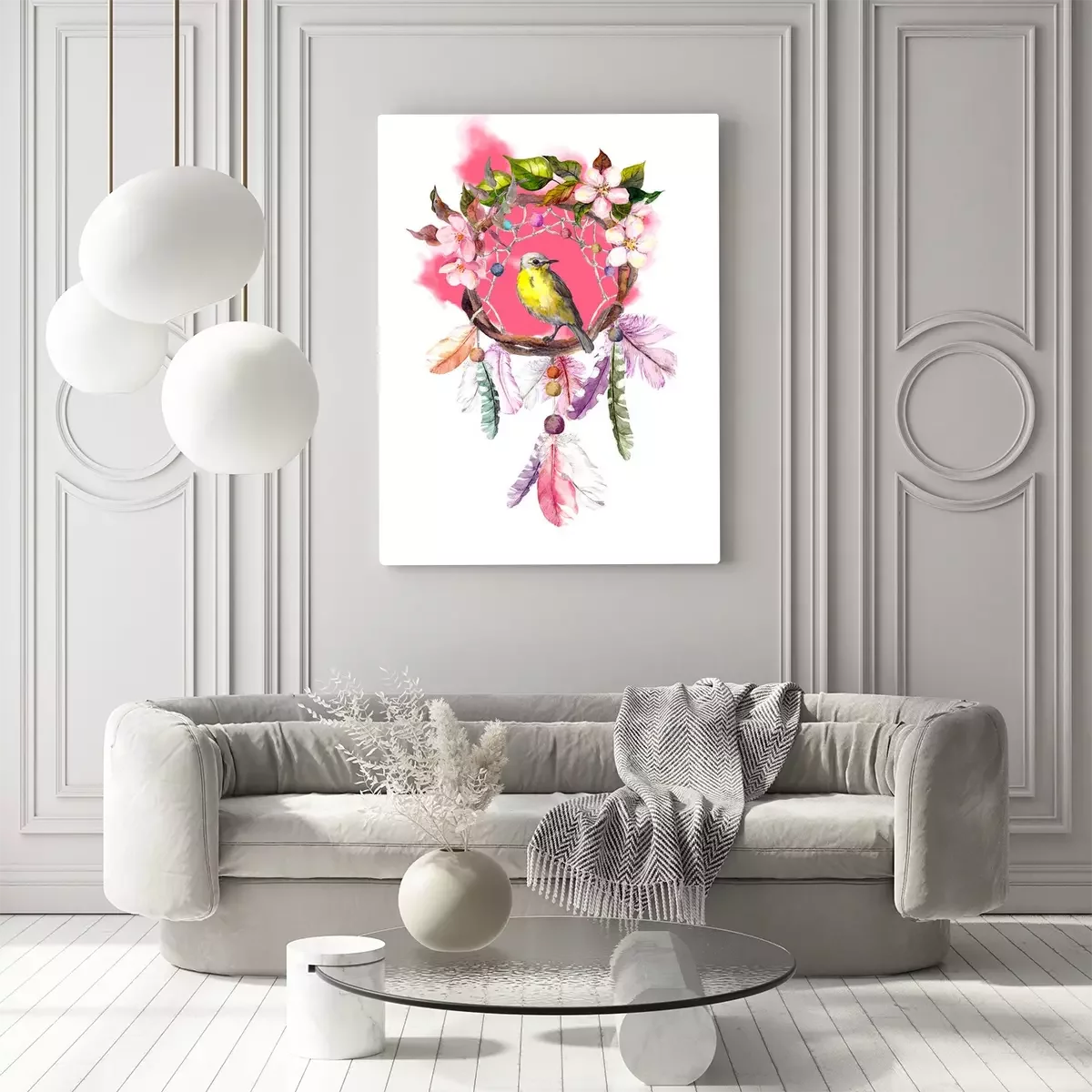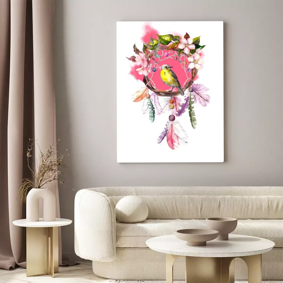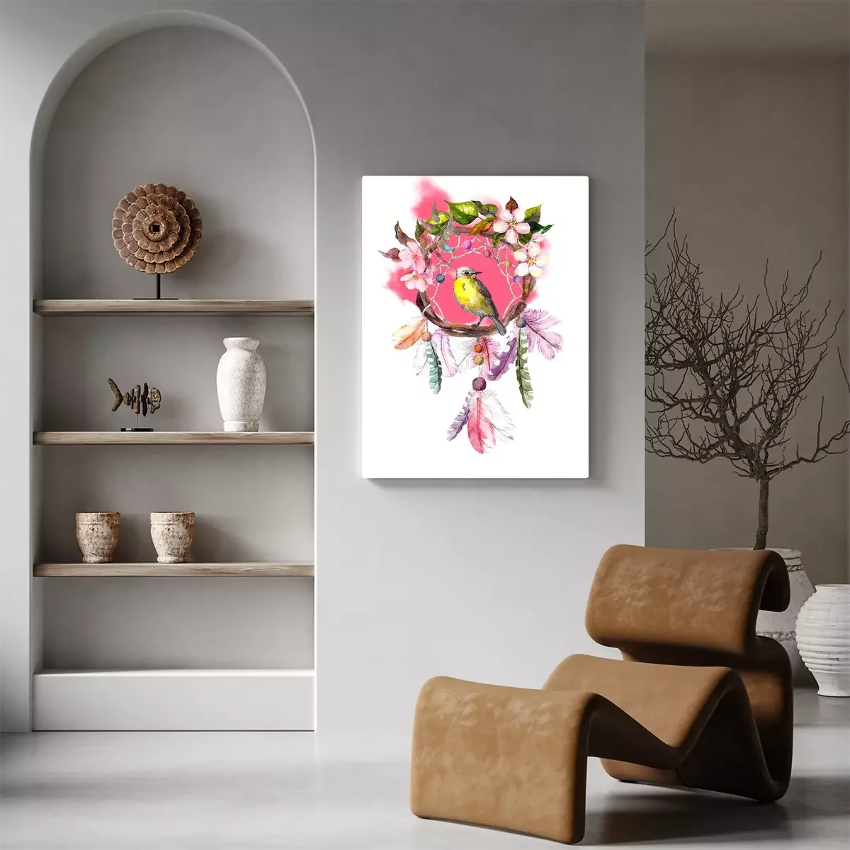 Tableau : Capteur de rêves avec un oiseau jaune