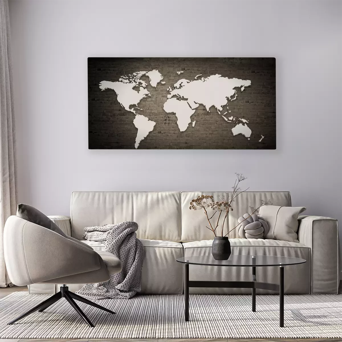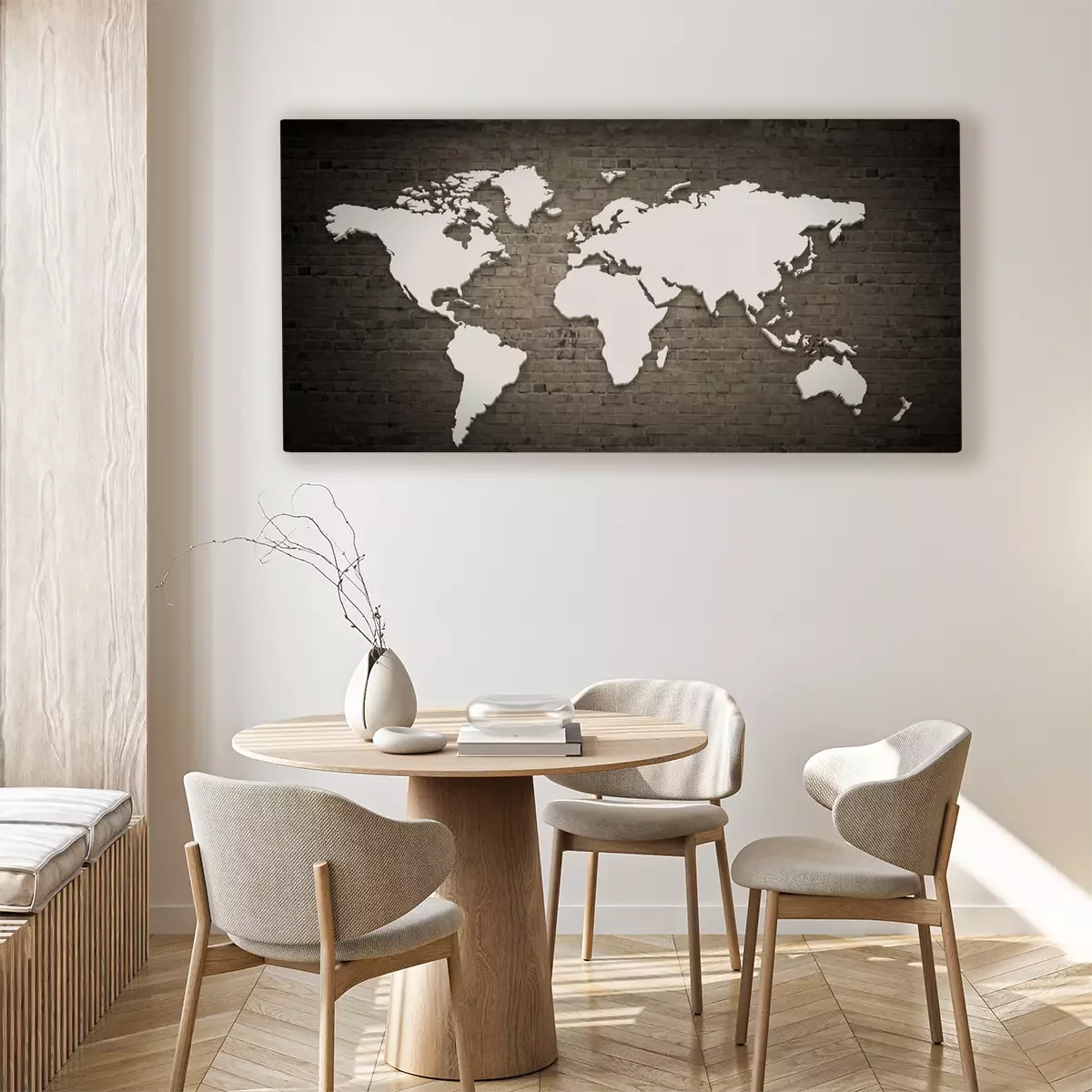 Tableau  Carte blanche du monde sur des briques
