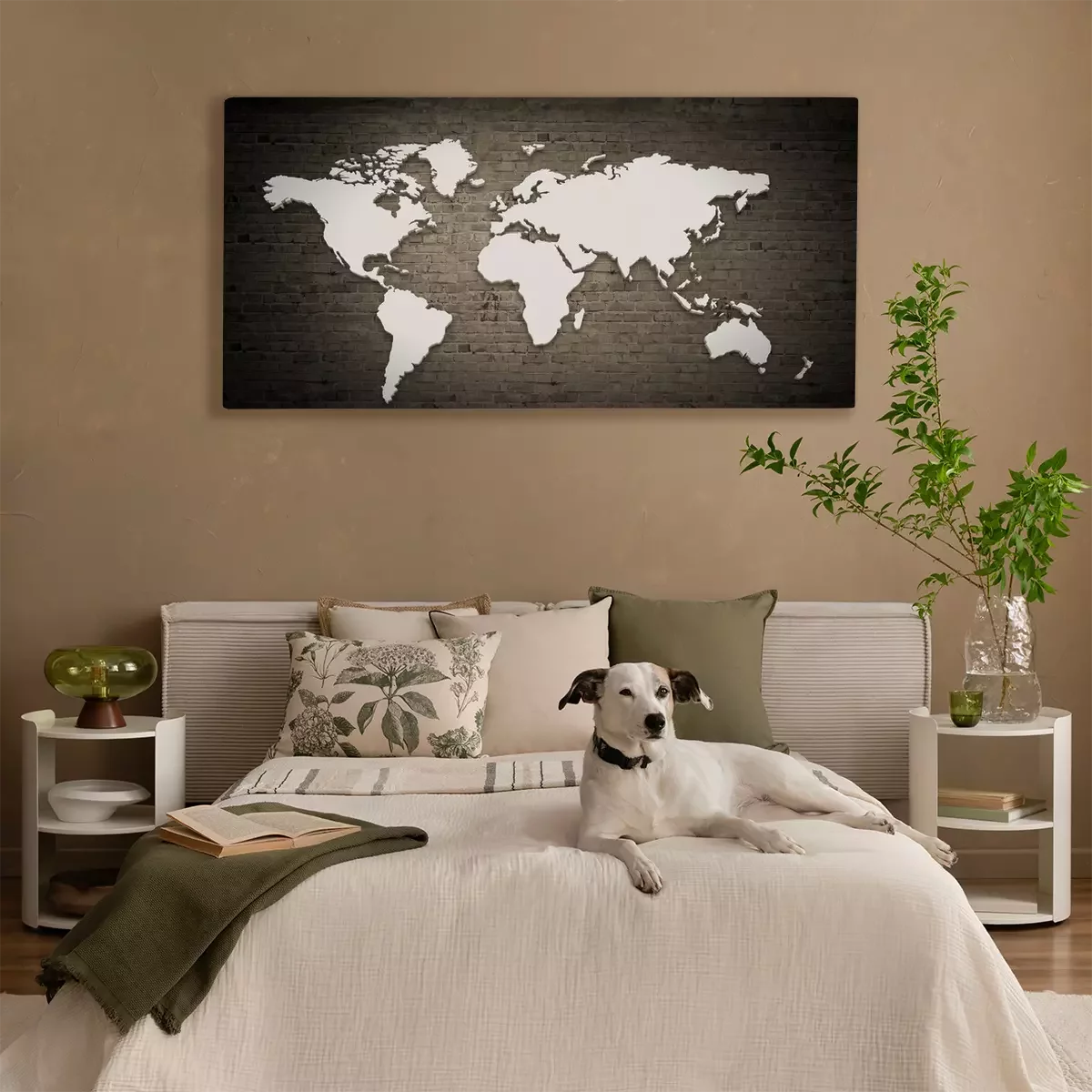 Tableau : Carte blanche du monde sur des briques