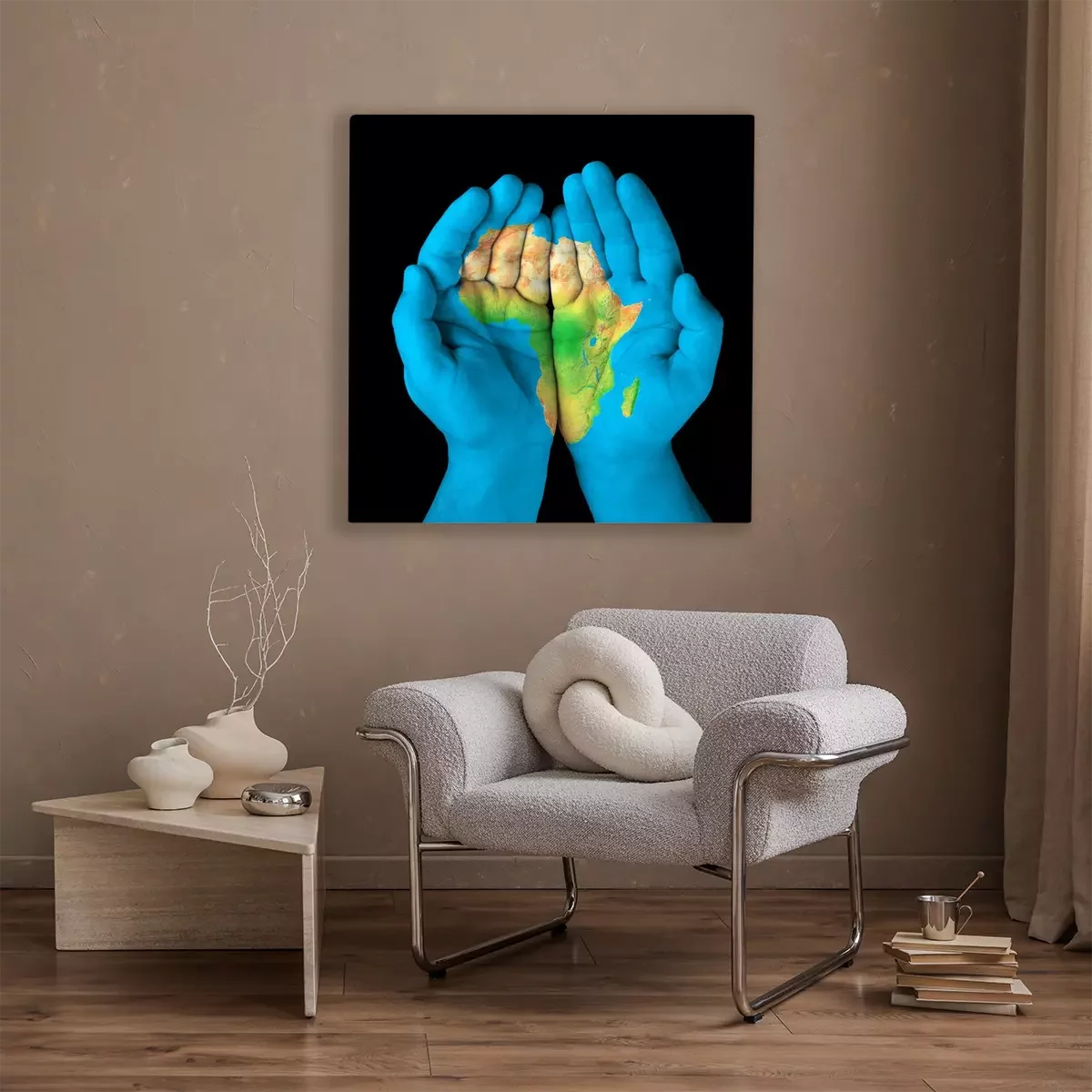 Tableau  Carte du continent de l'Afrique peinte sur les mains