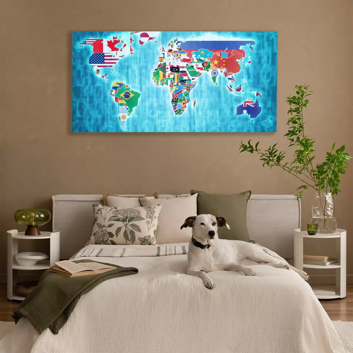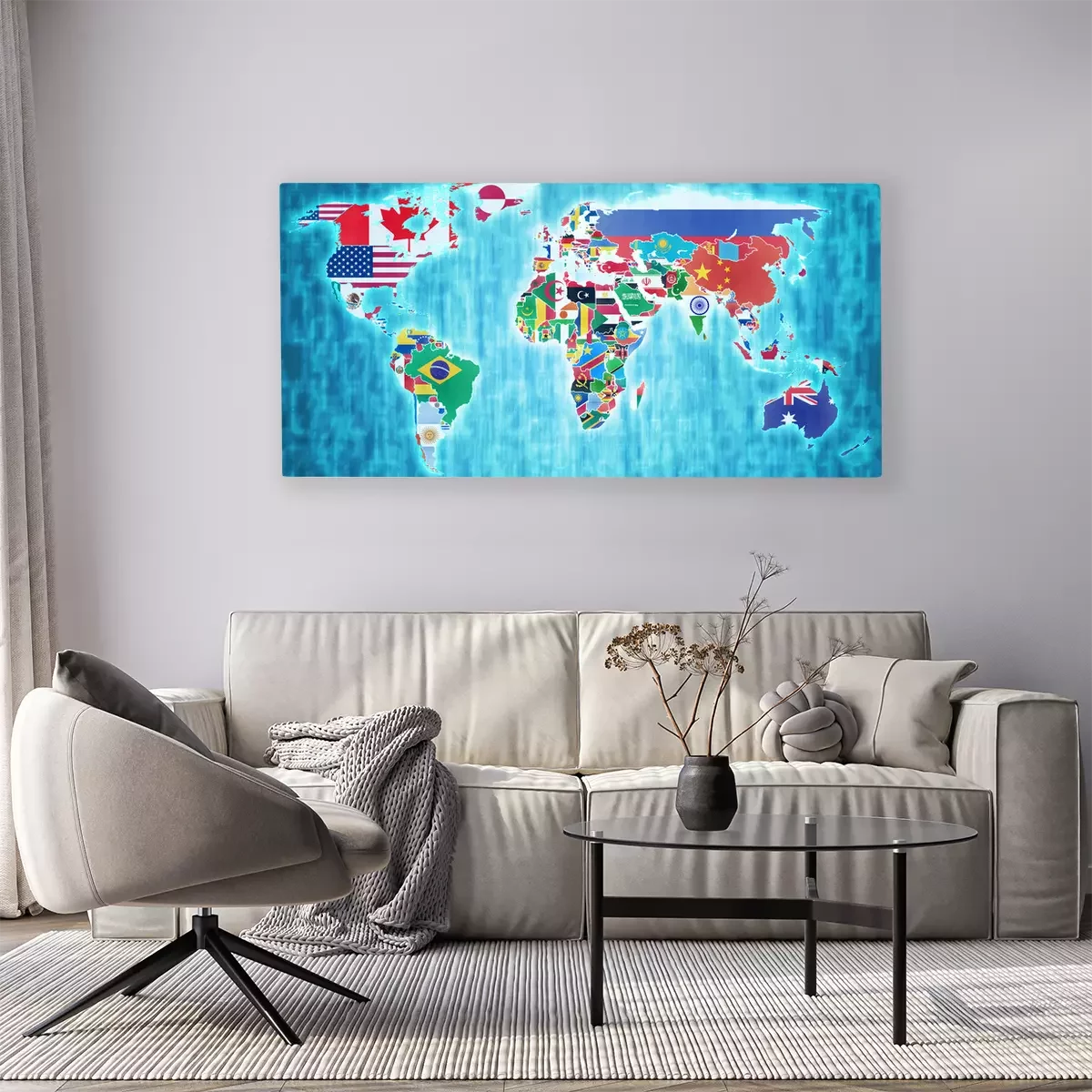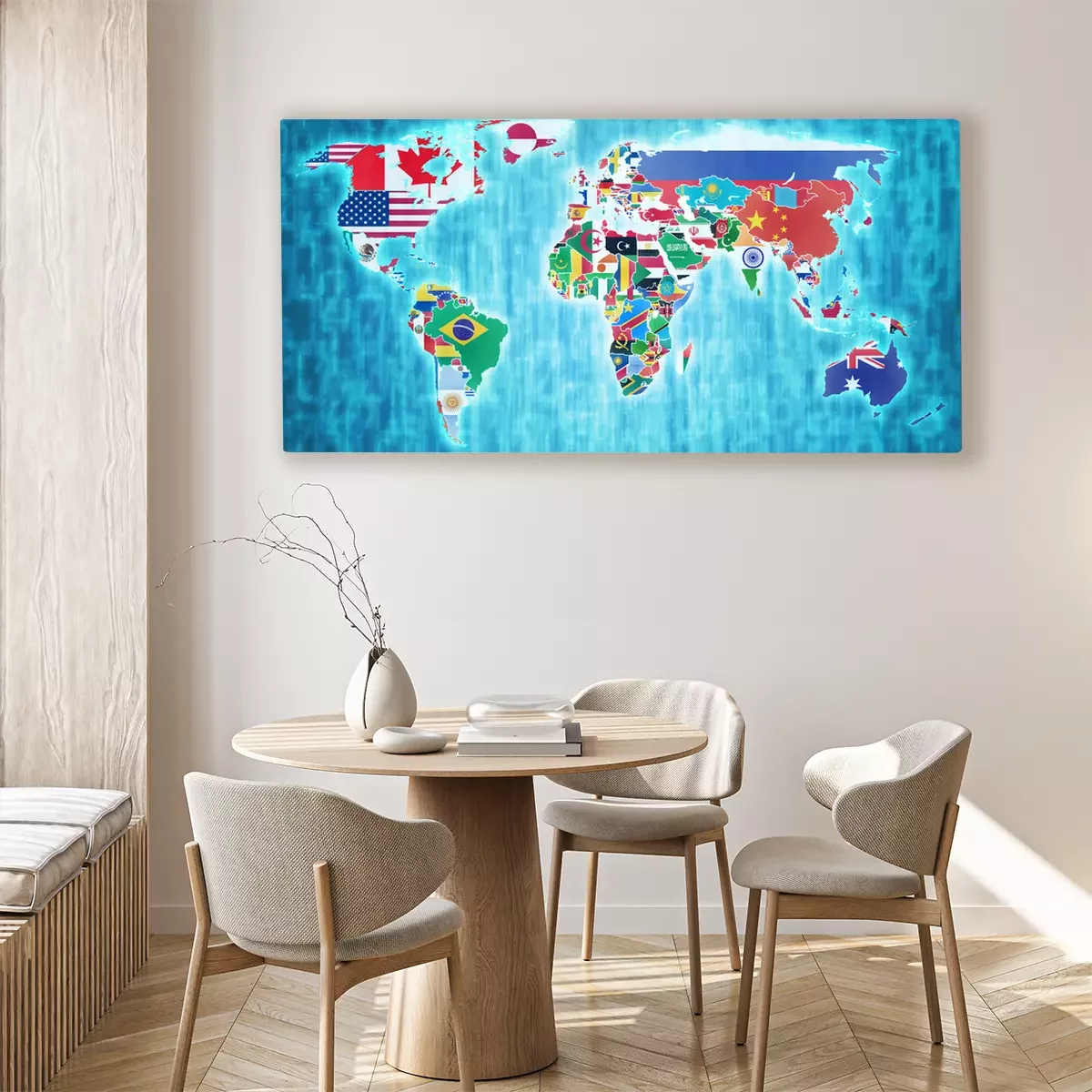 Tableau : Carte du monde avec des drapeaux colorés