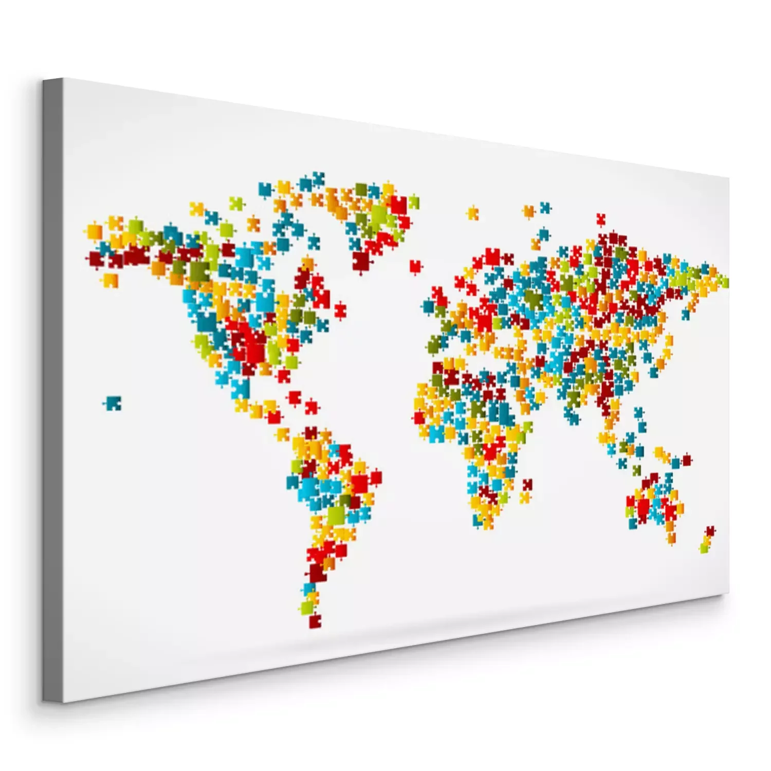 Tableau : Carte du monde faite de pièces de puzzle colorées