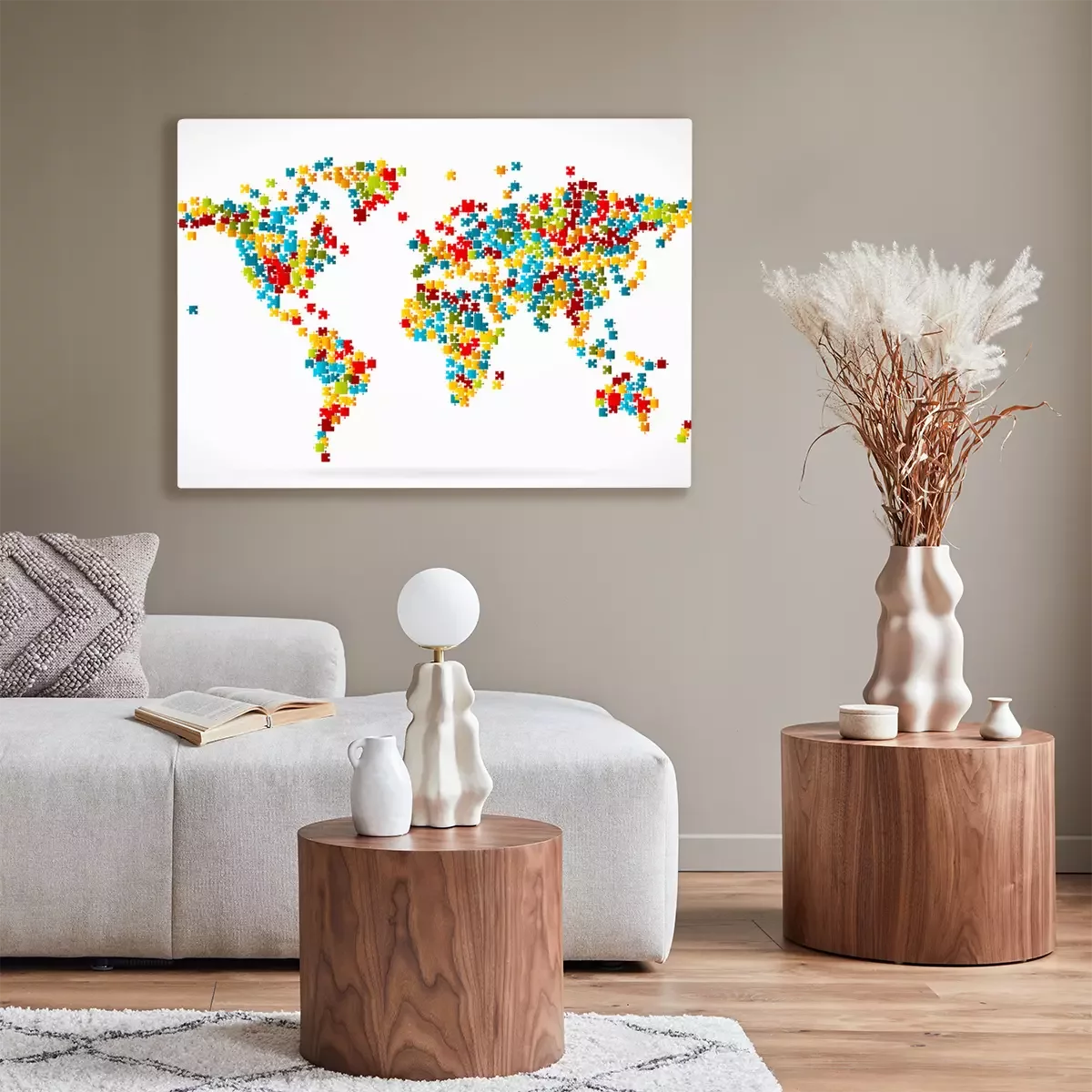 Tableau  Carte du monde faite de pièces de puzzle colorées