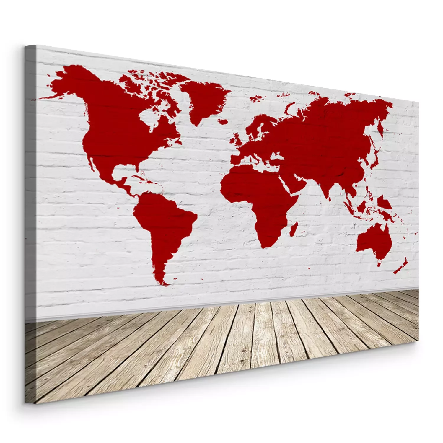 Tableau : Carte du monde rouge sur brique