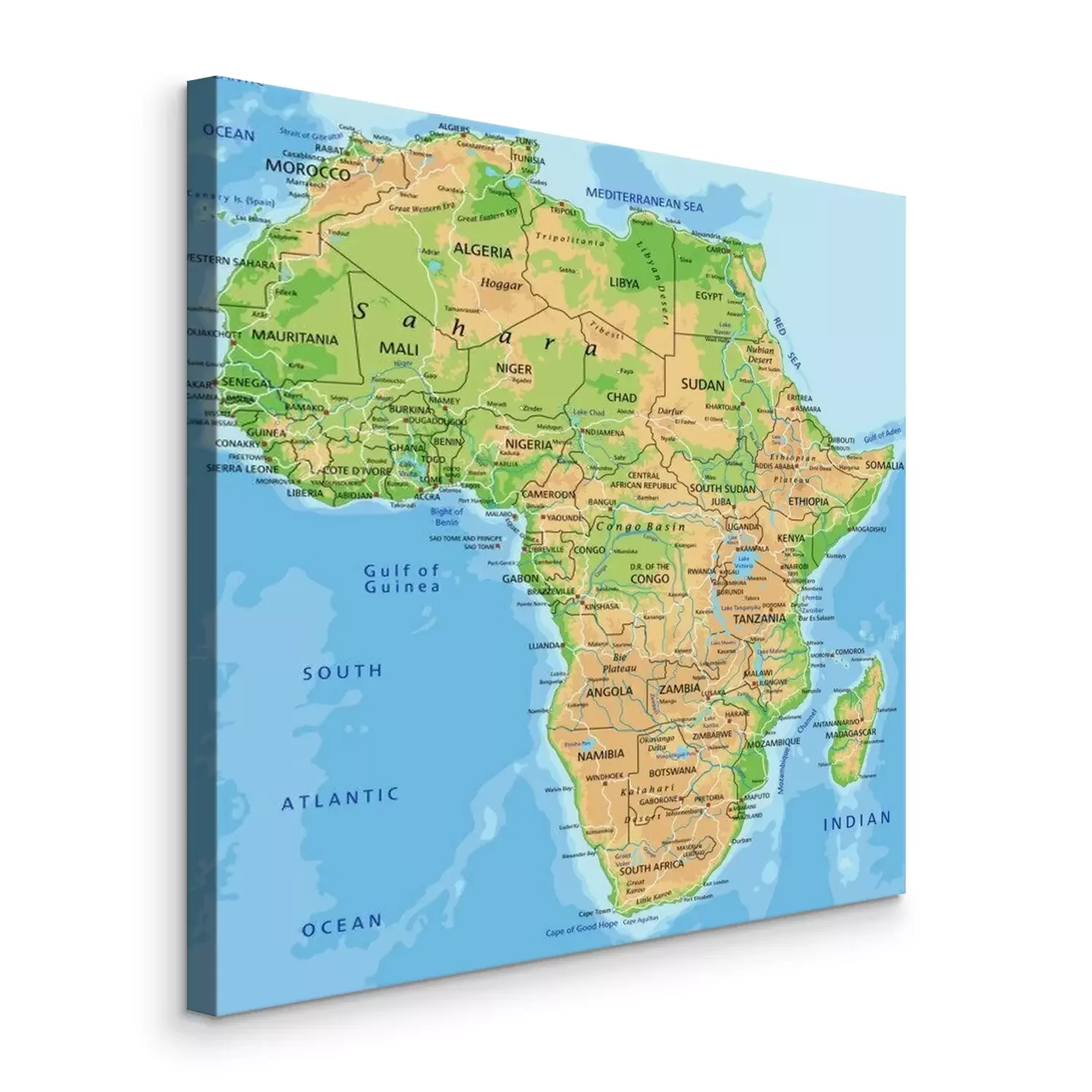 Tableau  Carte haut Afrique détaillée physique avec l'étiquetage.