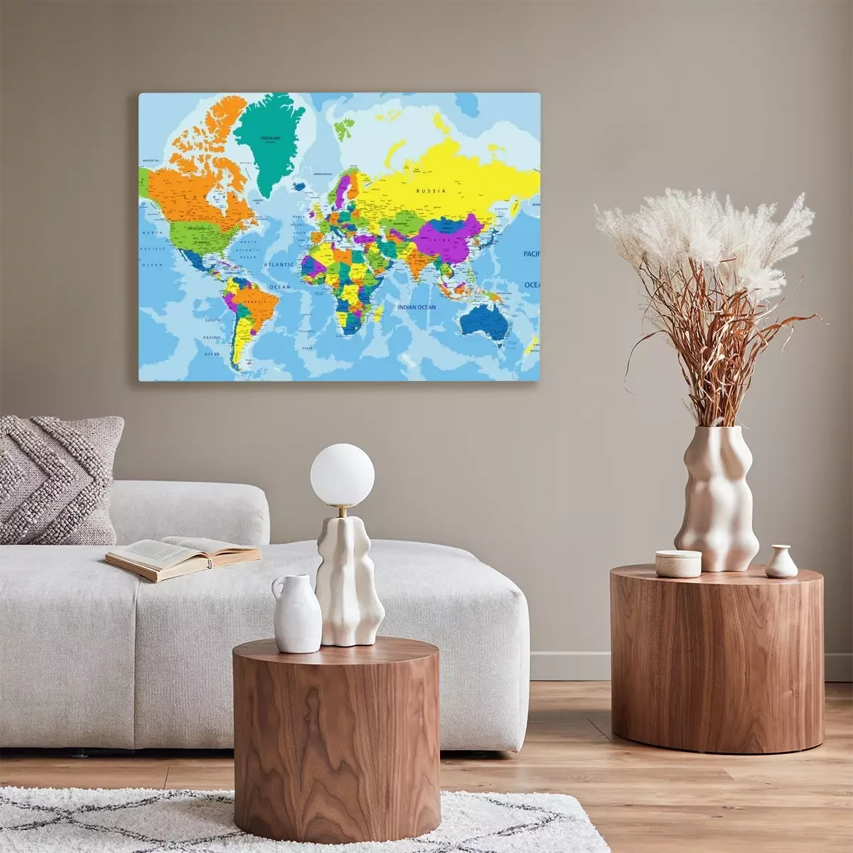 Tableau : Carte politique colorée du monde en anglais