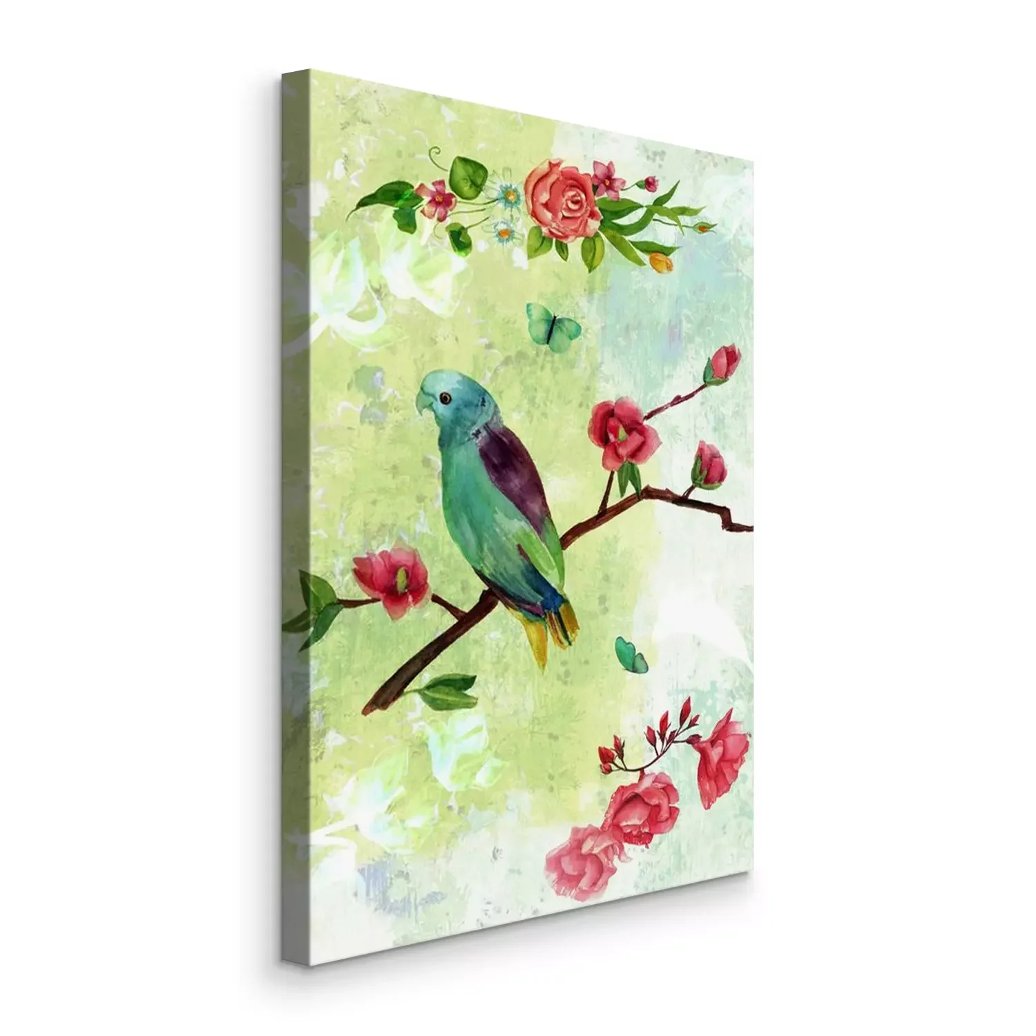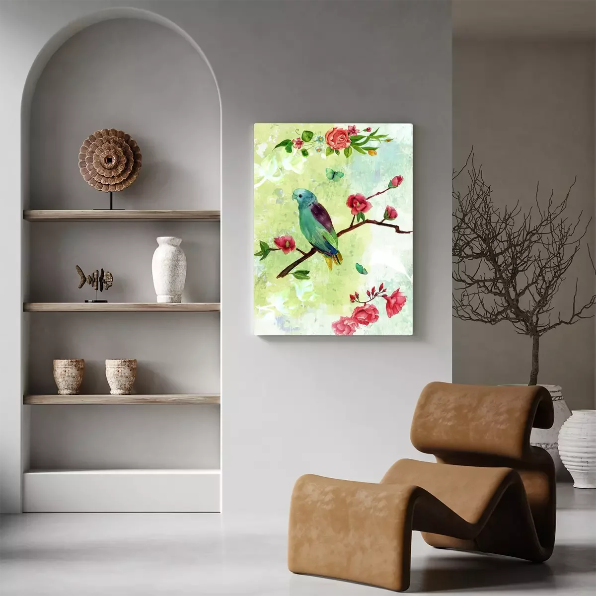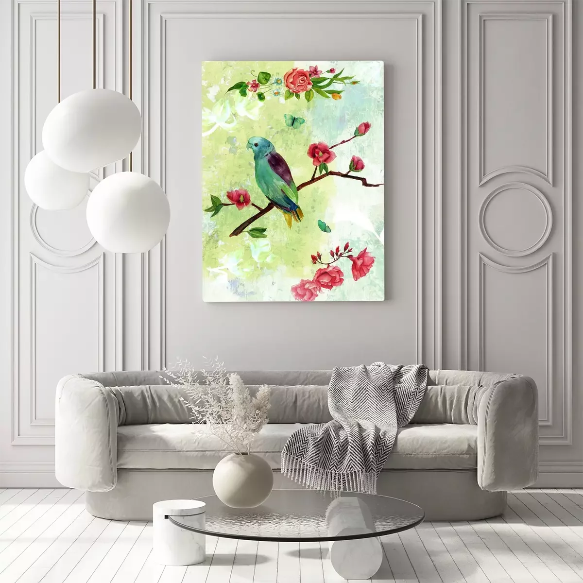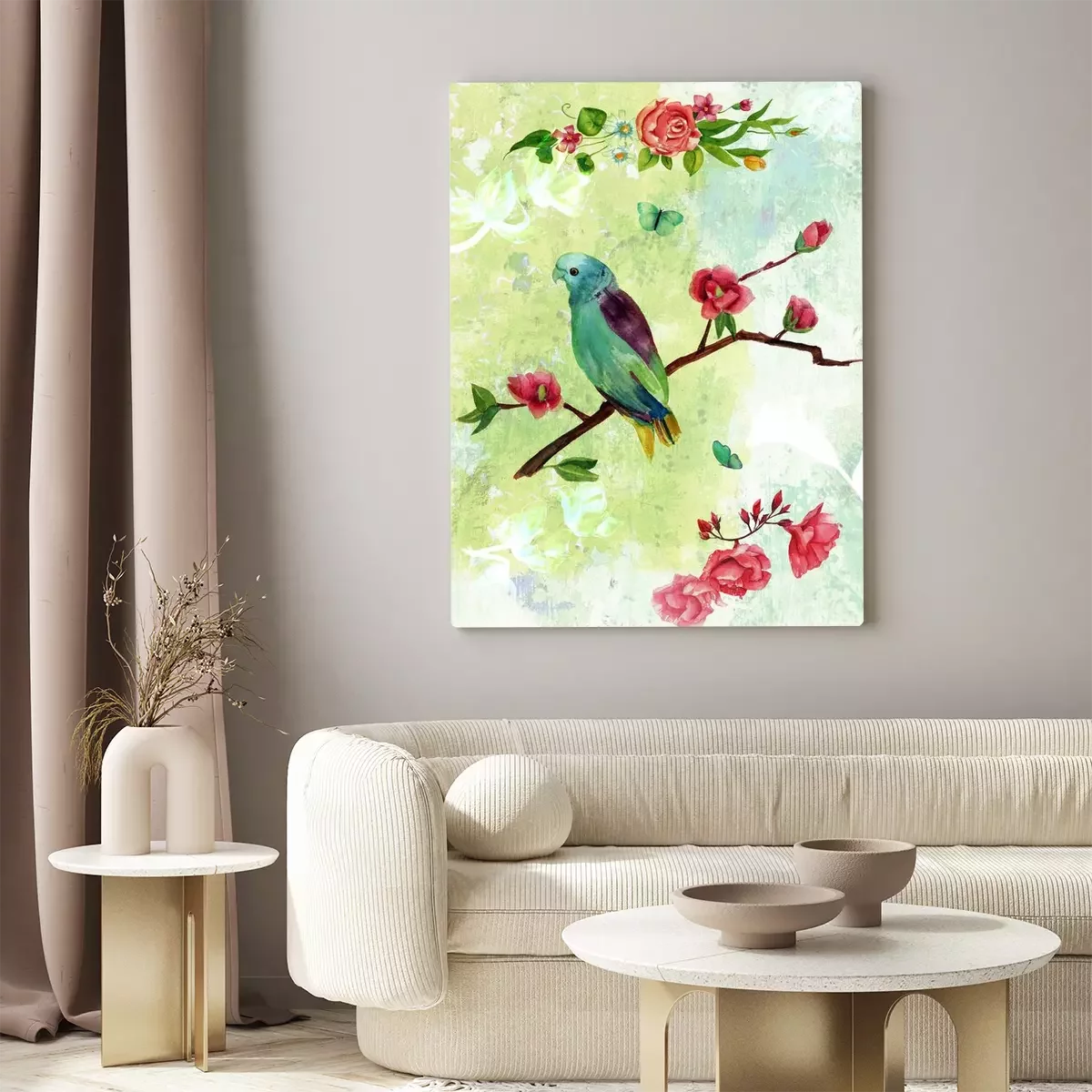 Tableau  Carte postale vintage de collage avec l'oiseau, les papillons et les fleurs
