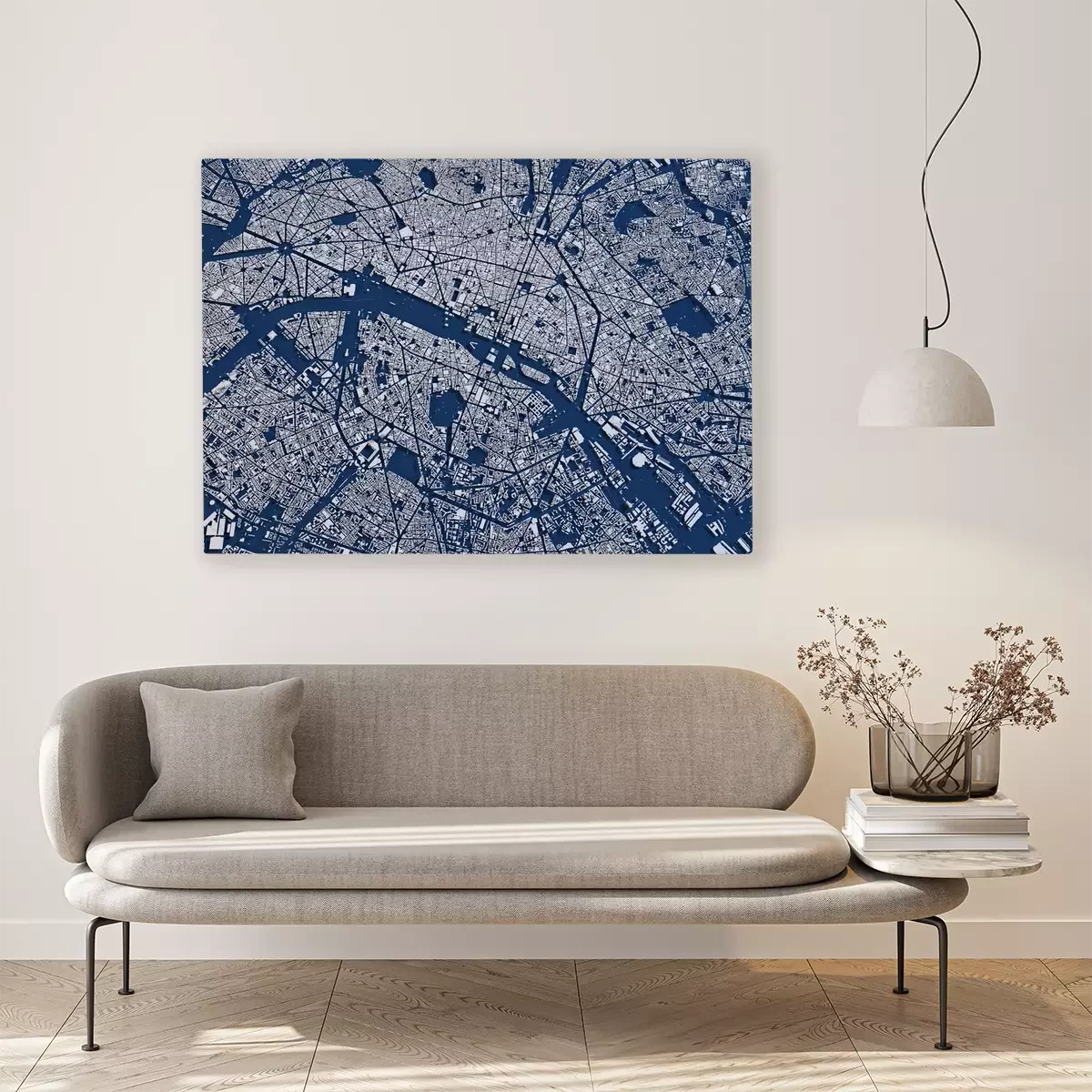 Tableau  Cartina Parigi, vue satellitaire, sezione 3d, strade e vie, France