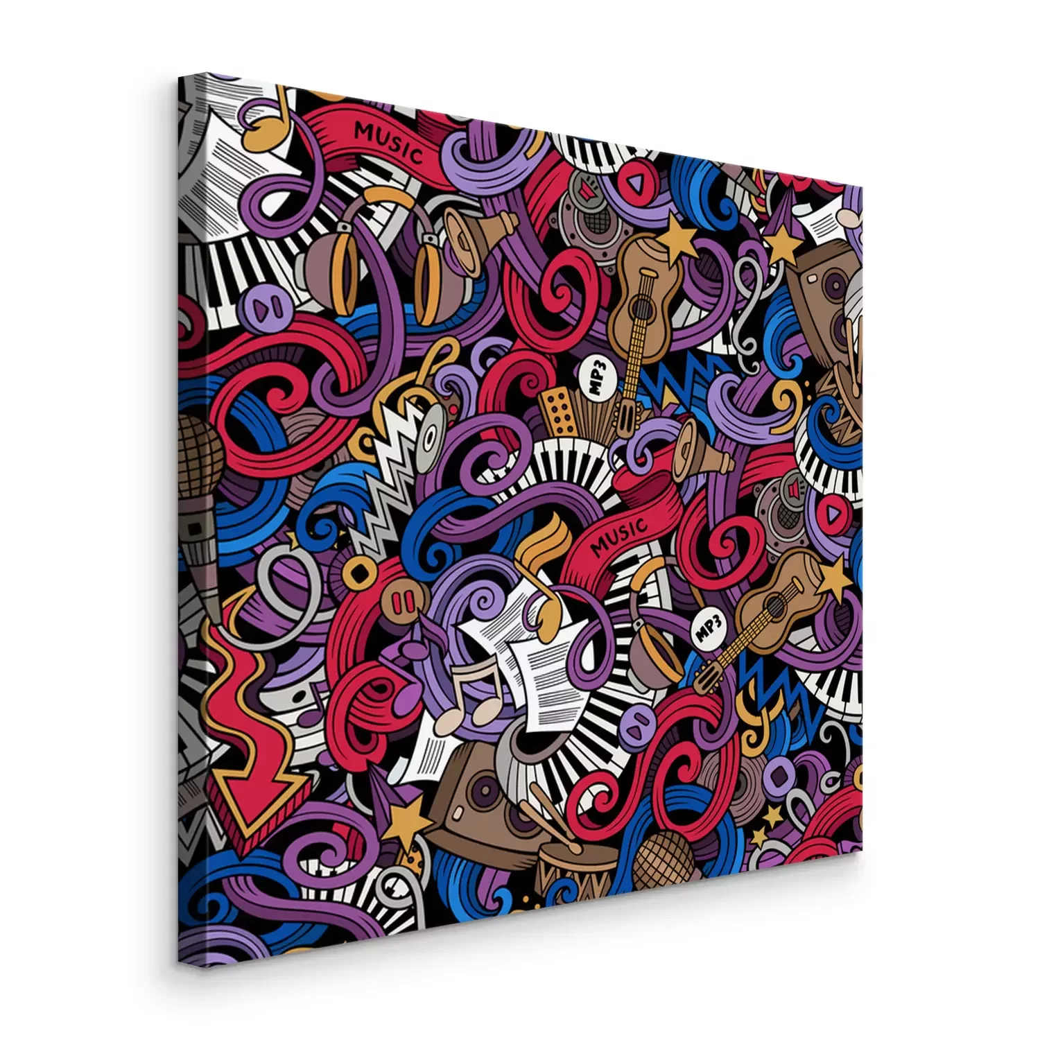 Tableau : Cartoon hand drawn doodles Music seamless pattern