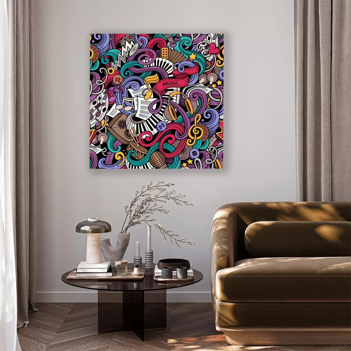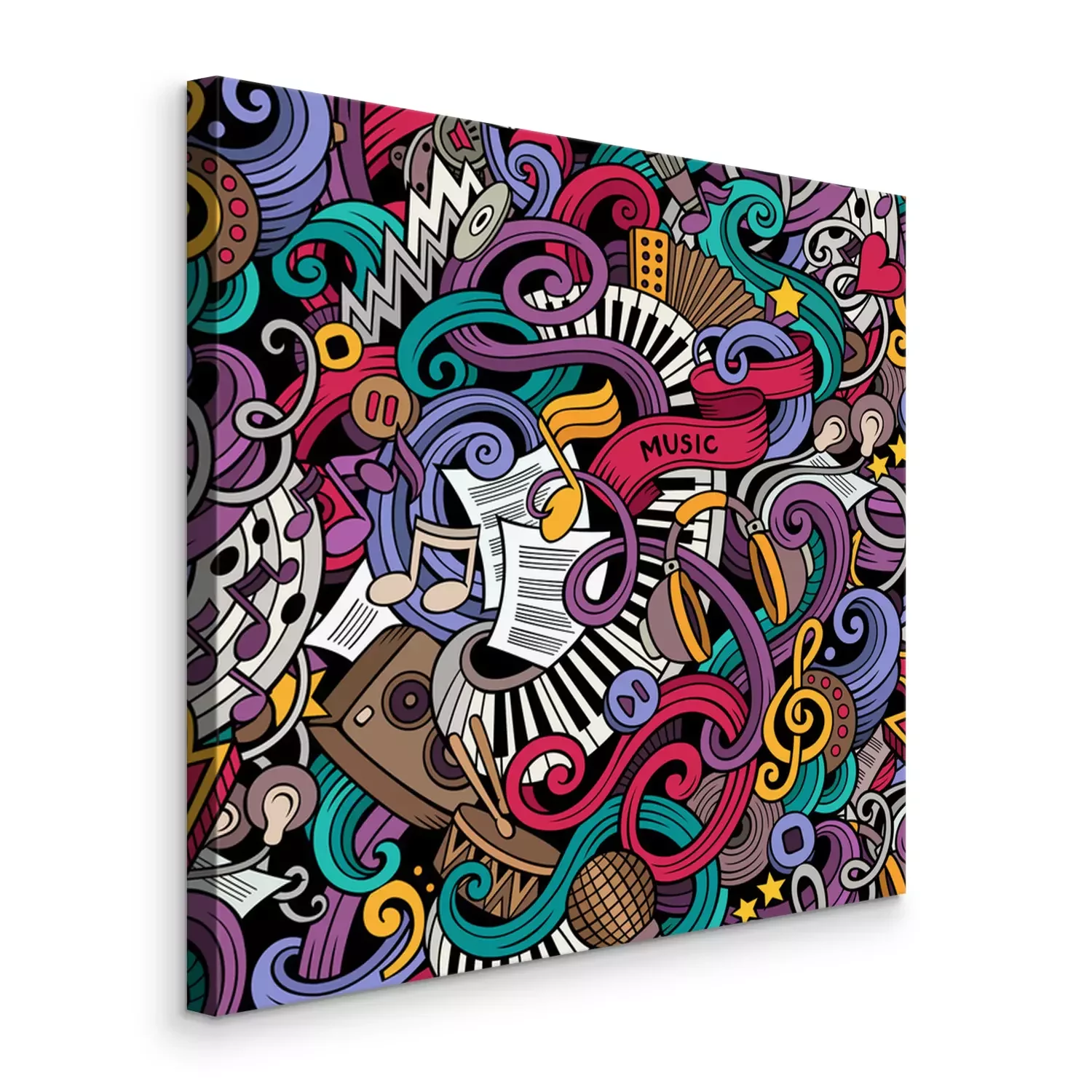 Tableau : Cartoon hand drawn doodles Music seamless pattern
