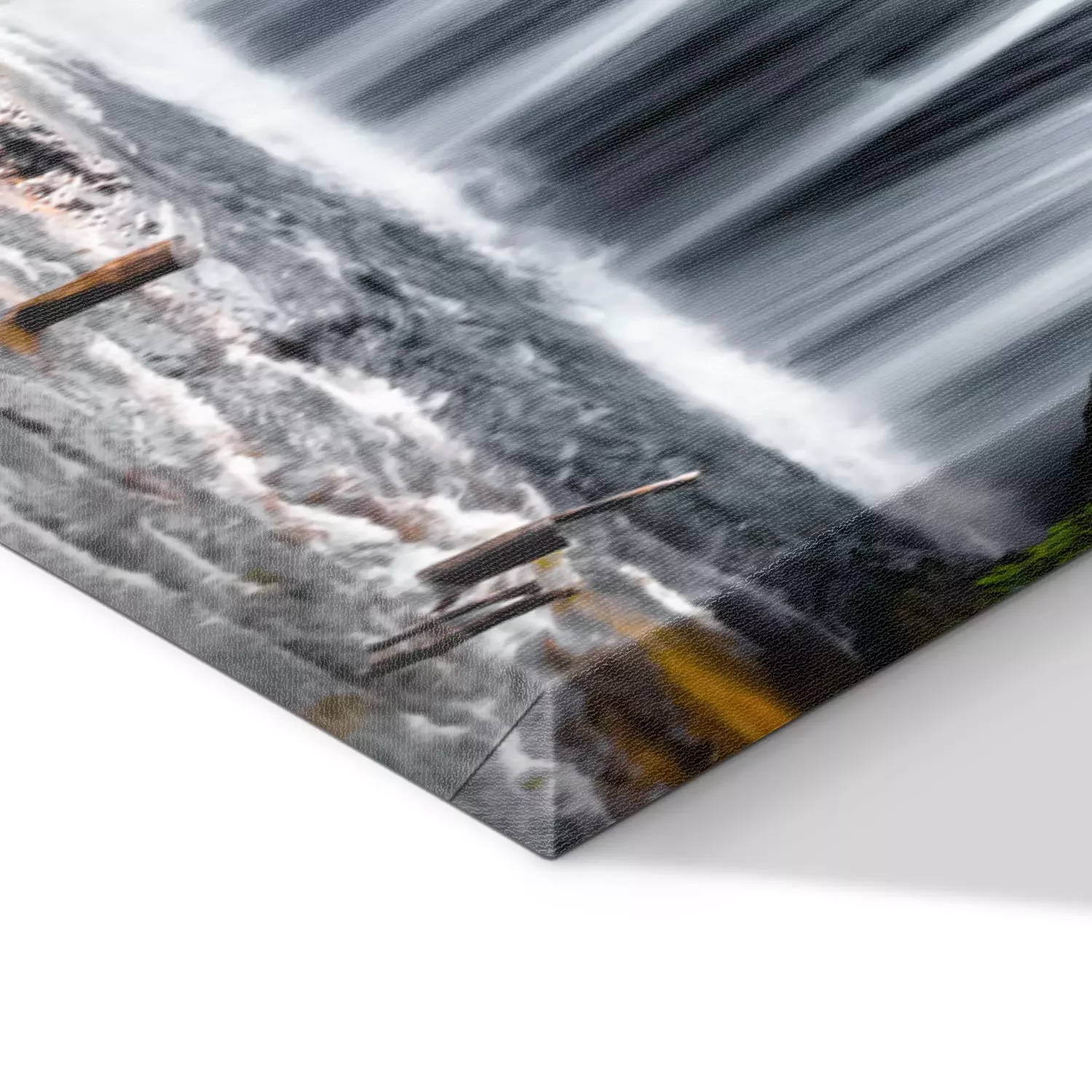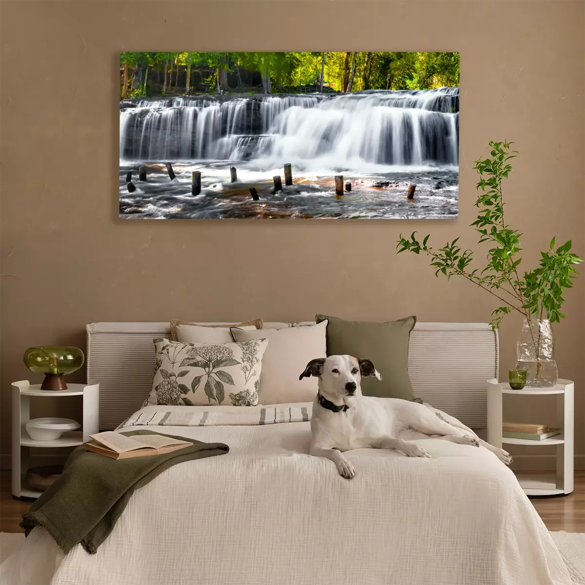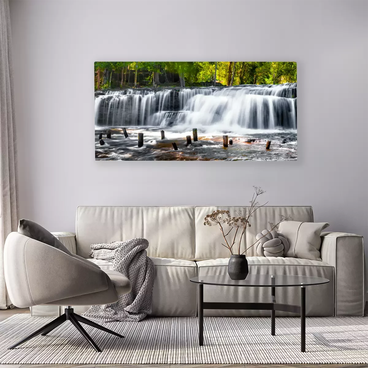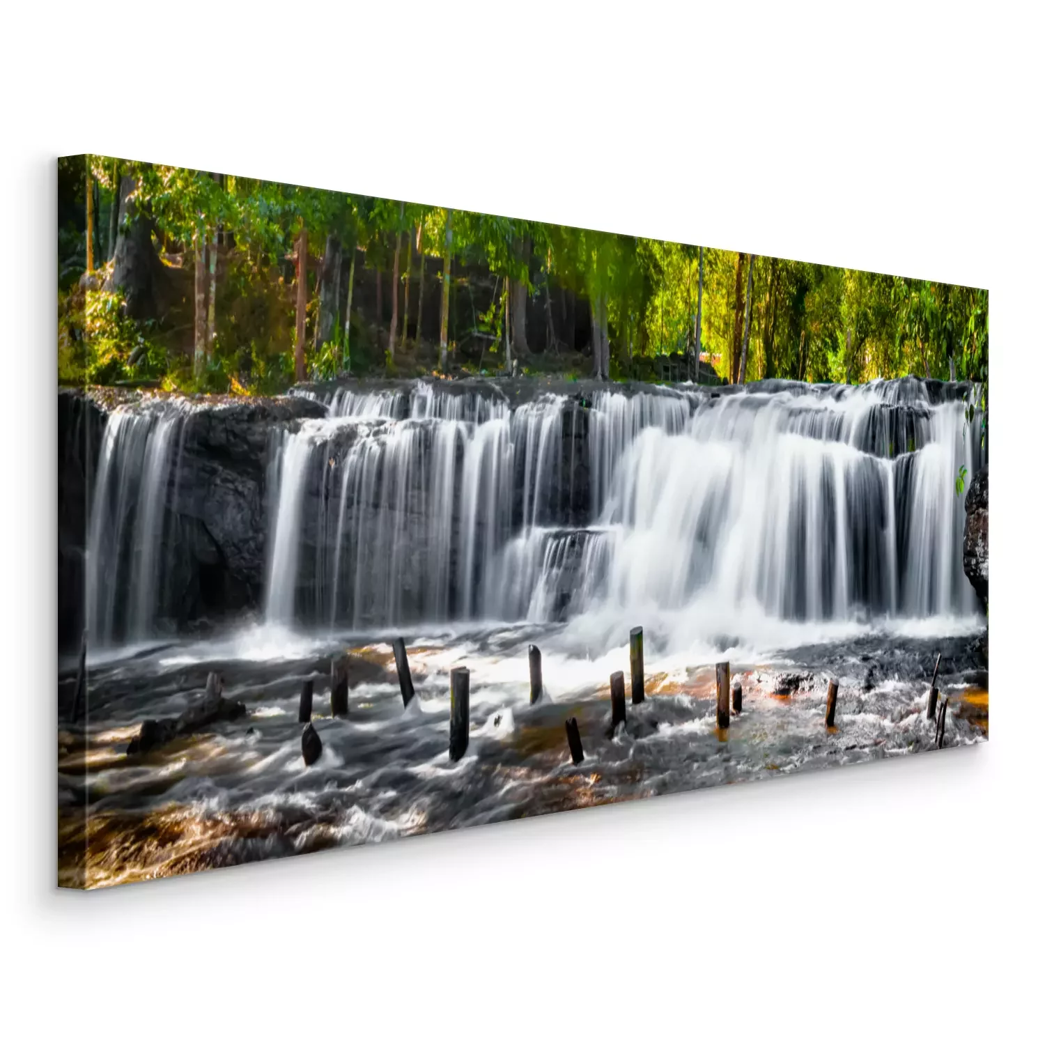 Cascade avec lac et pilotis dans la forêt