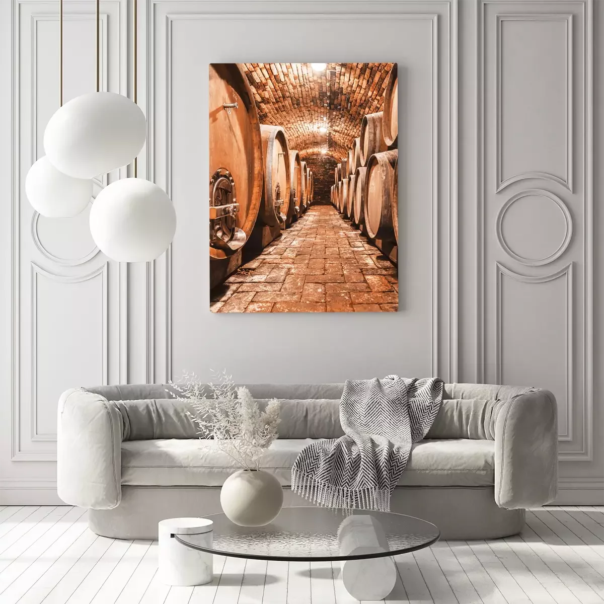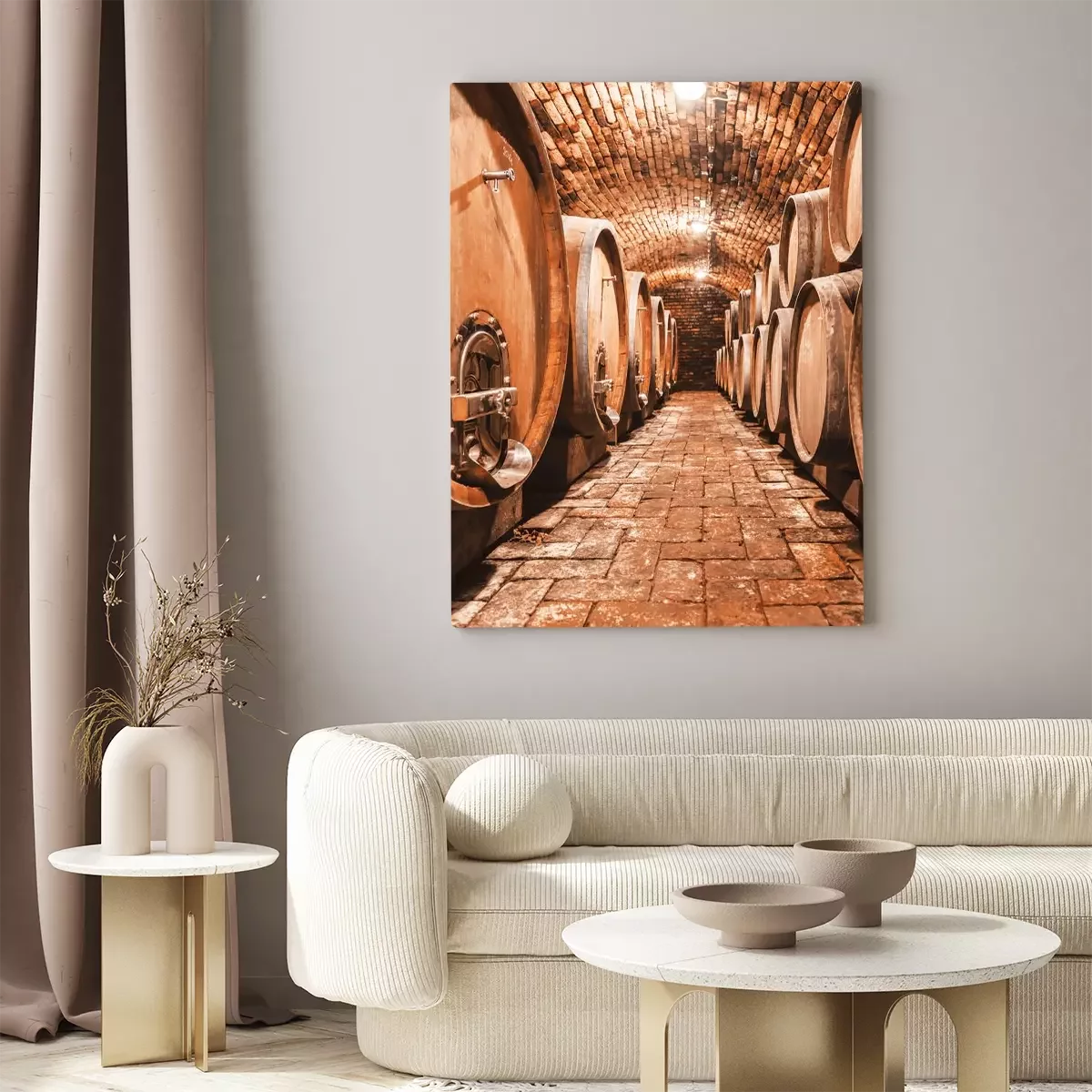 Cave rustique en pierre avec barriques