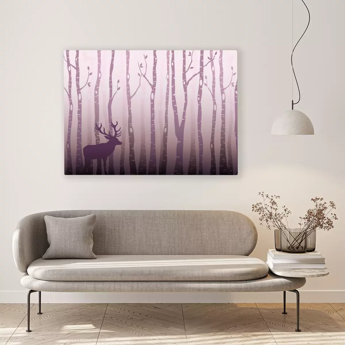 Tableau  Cerfs contre les arbres