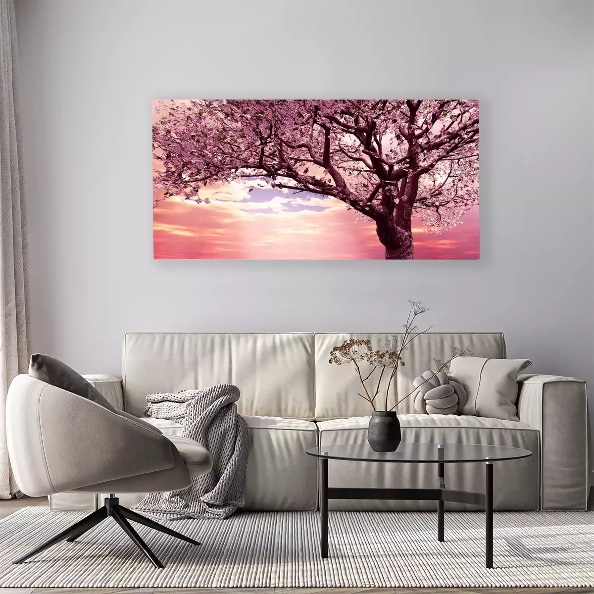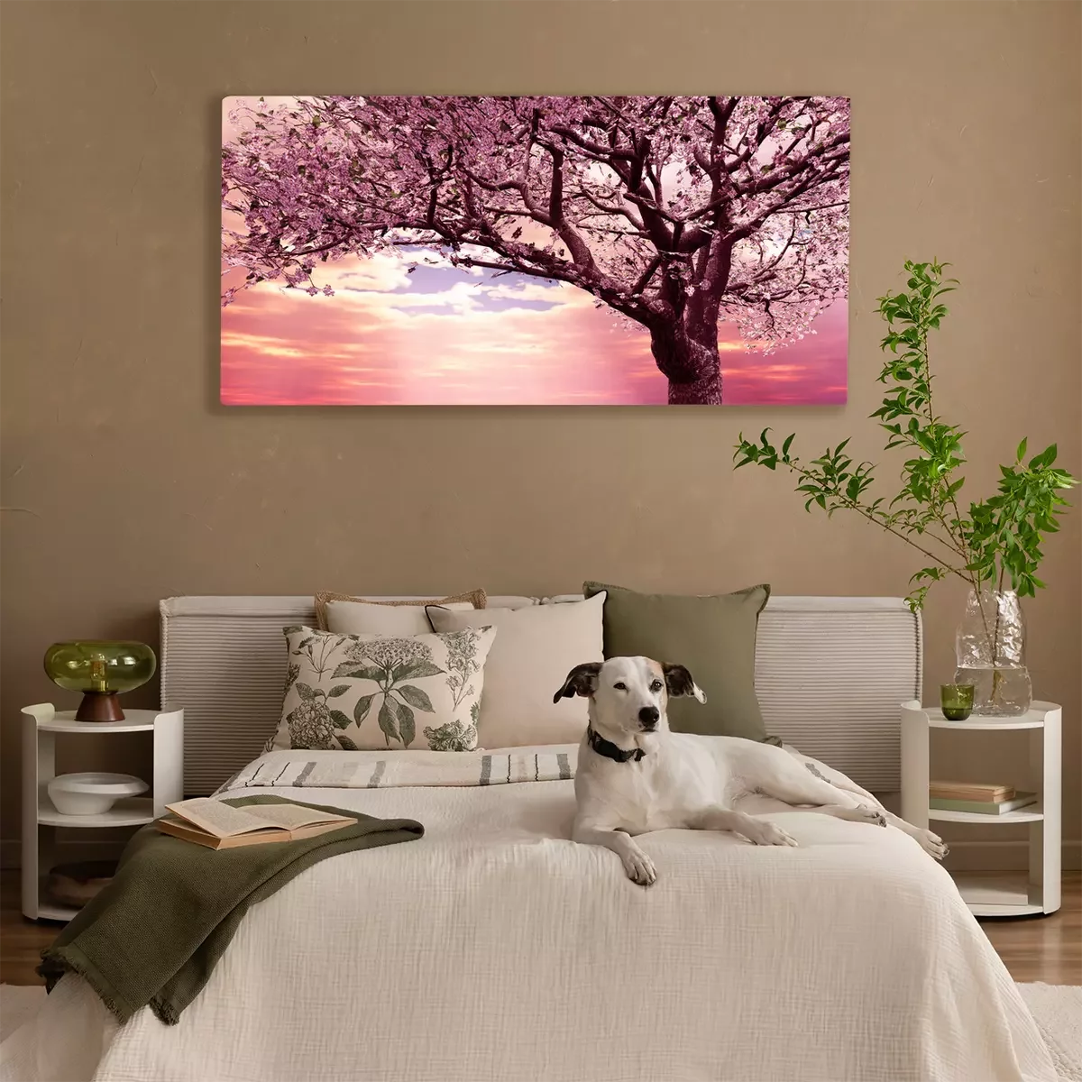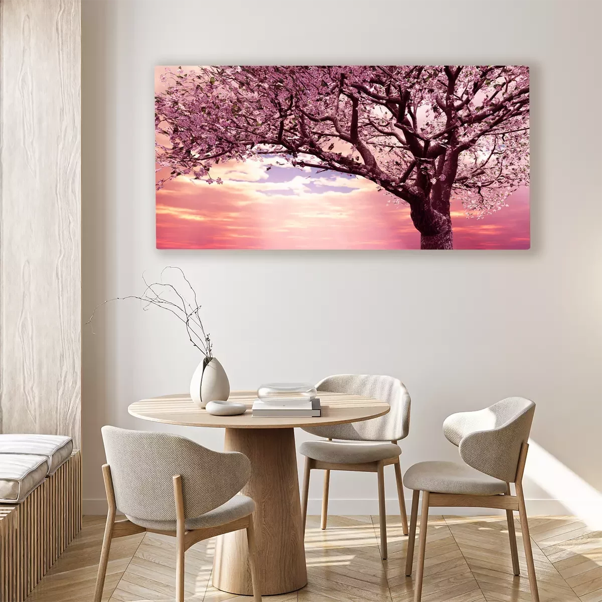 Tableau  Cerise en fleurs sur fond de coucher de soleil