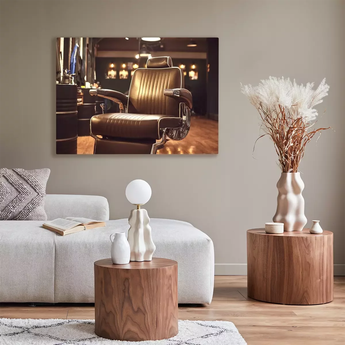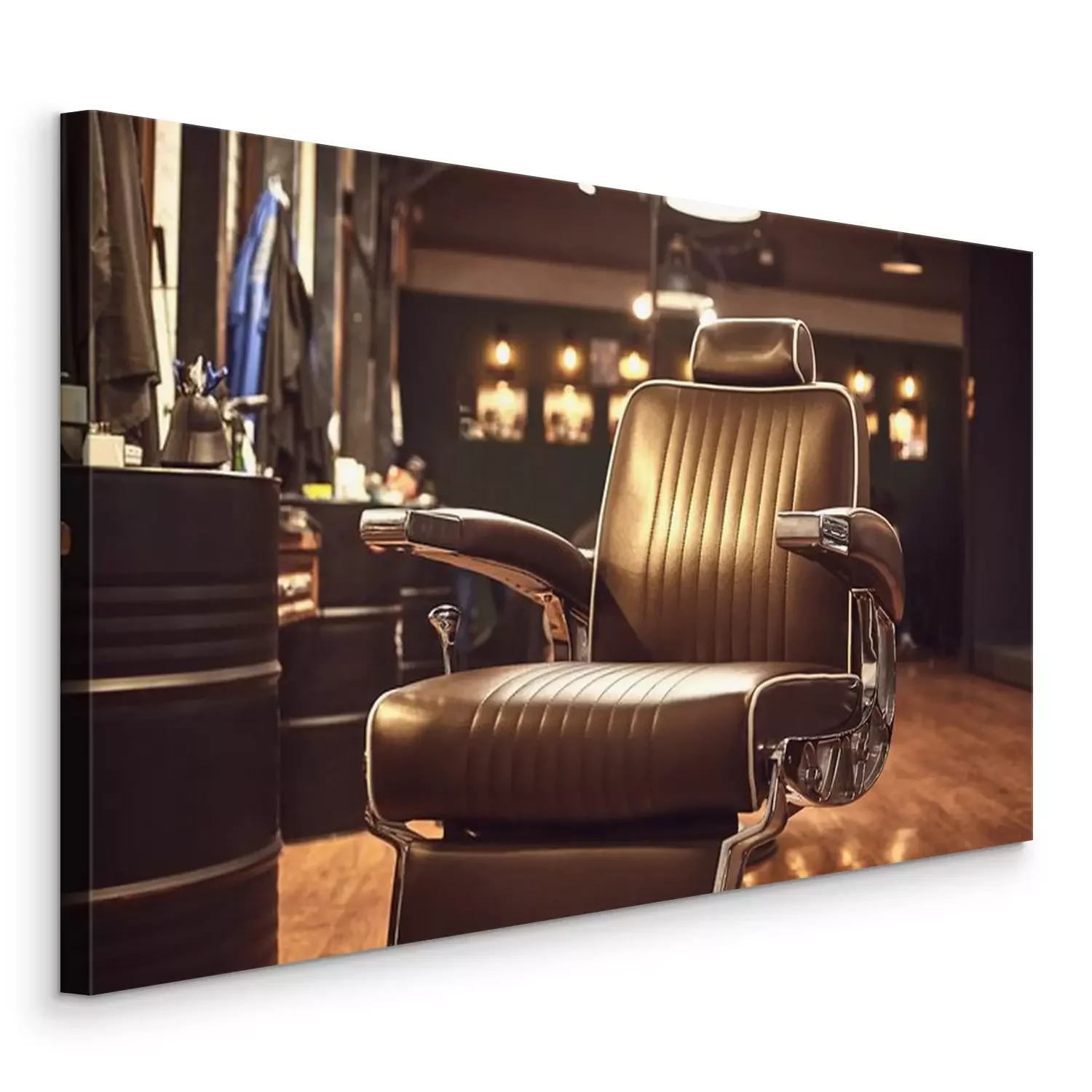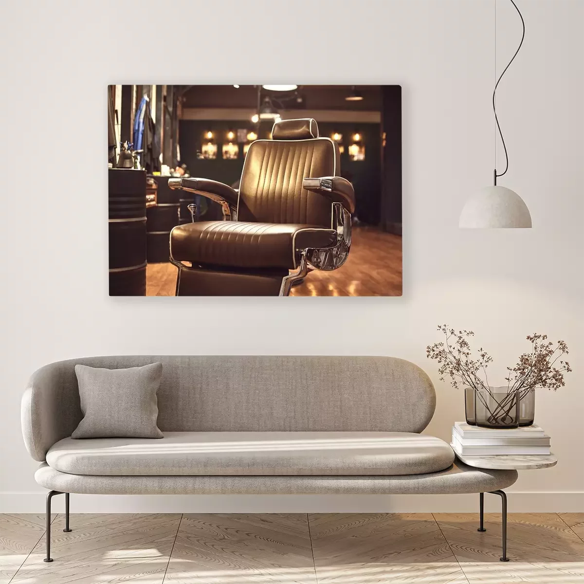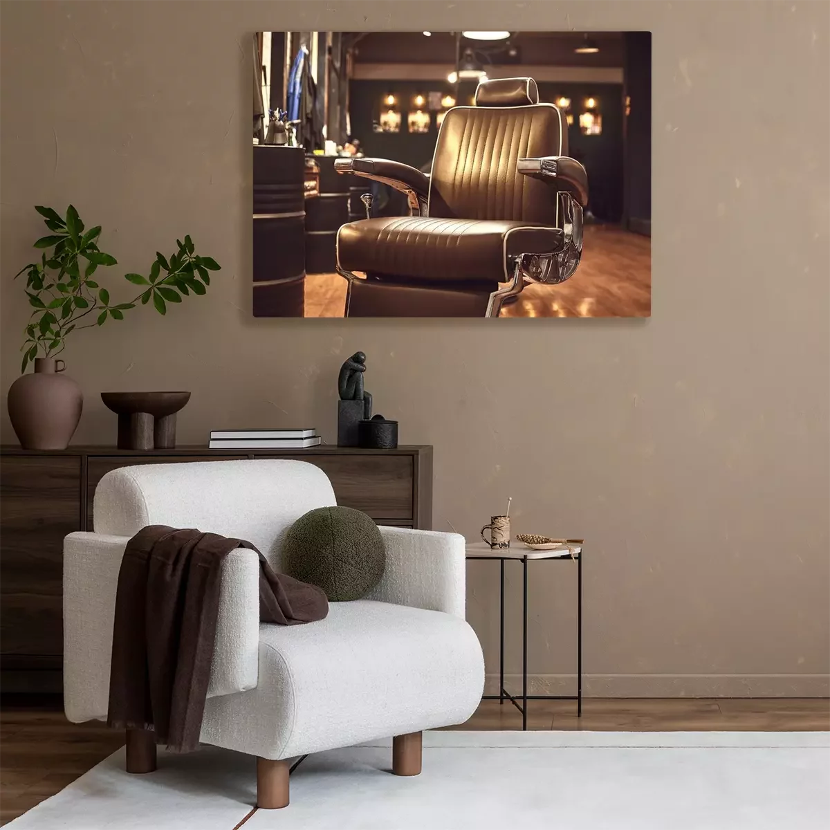 Tableau  Chaise en cuir marron dans le salon de coiffure. Style loft