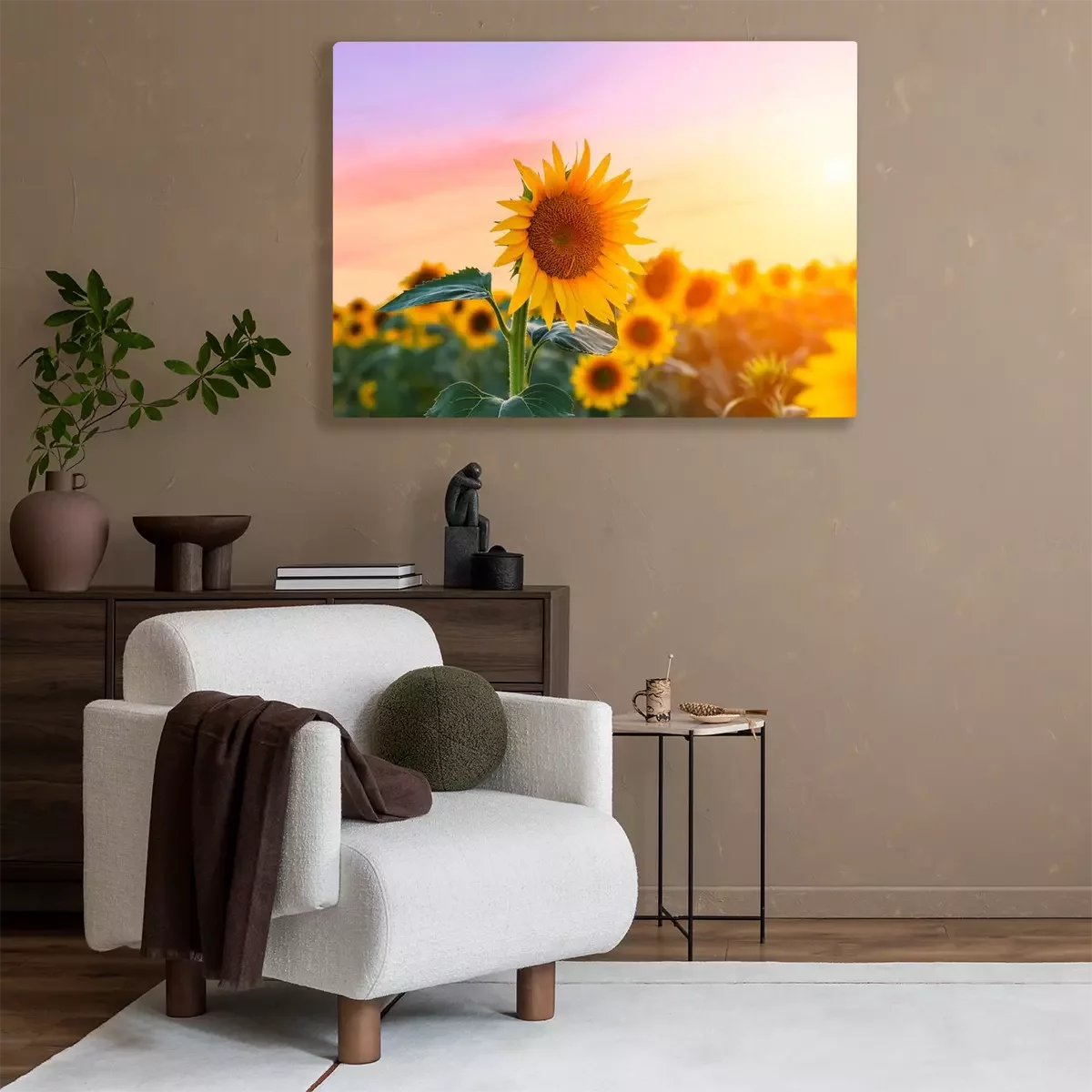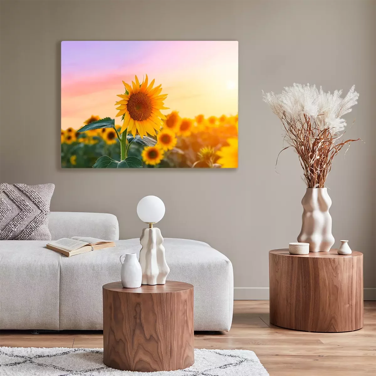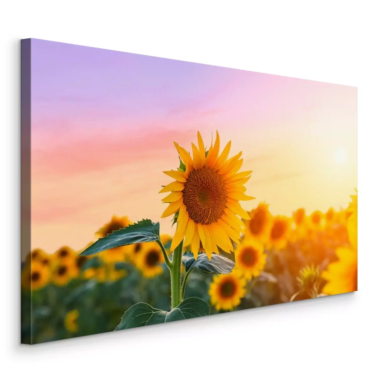 Tableau  Champ de tournesols avec un coucher de soleil en arrière-plan