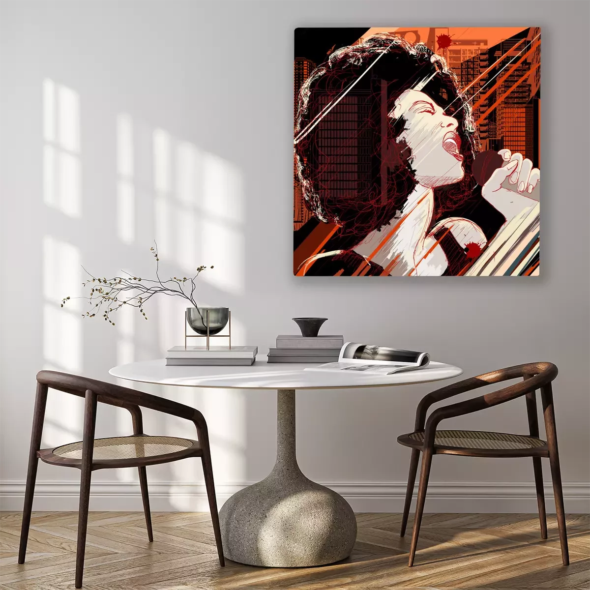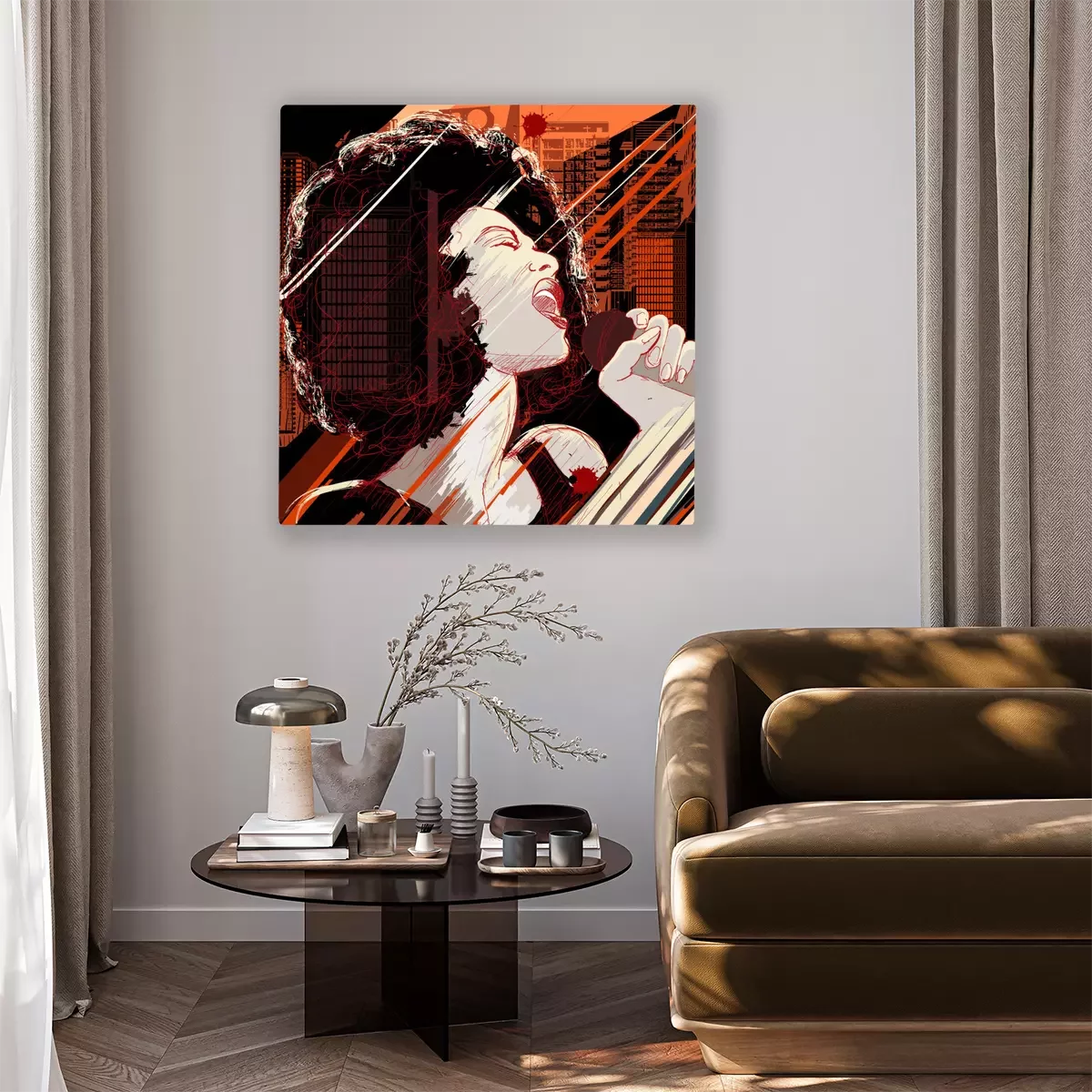 Tableau : chanteuse de jazz sur le fond grunge