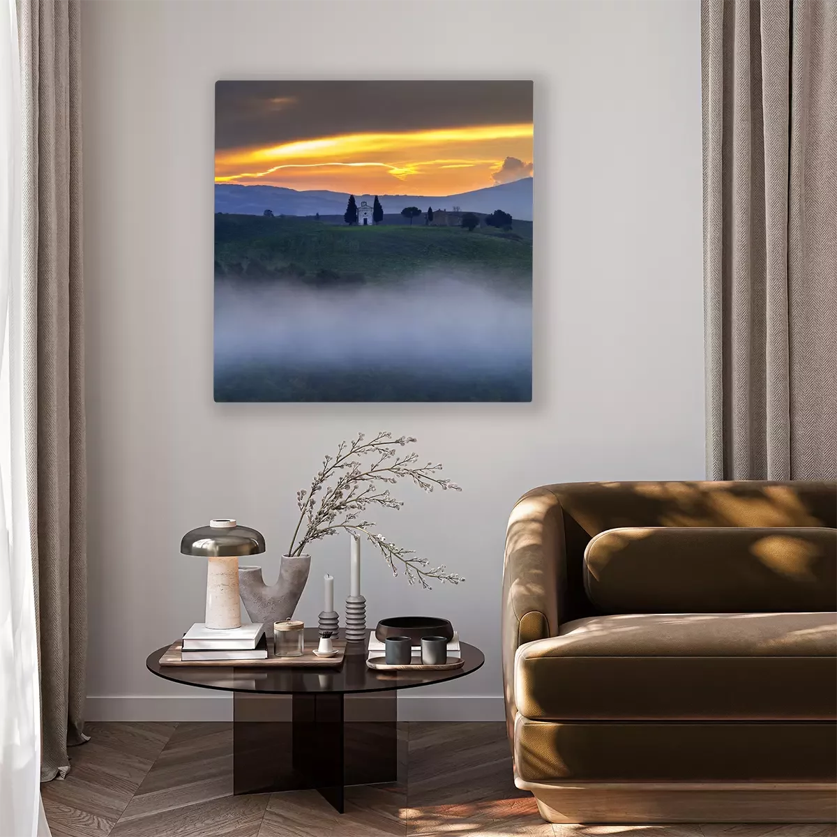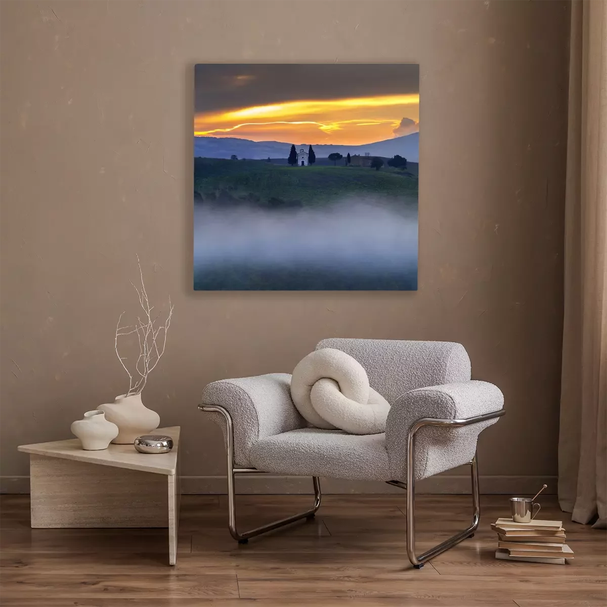 Tableau  chapelle La Valette dans le crépuscule du matin en Toscane
