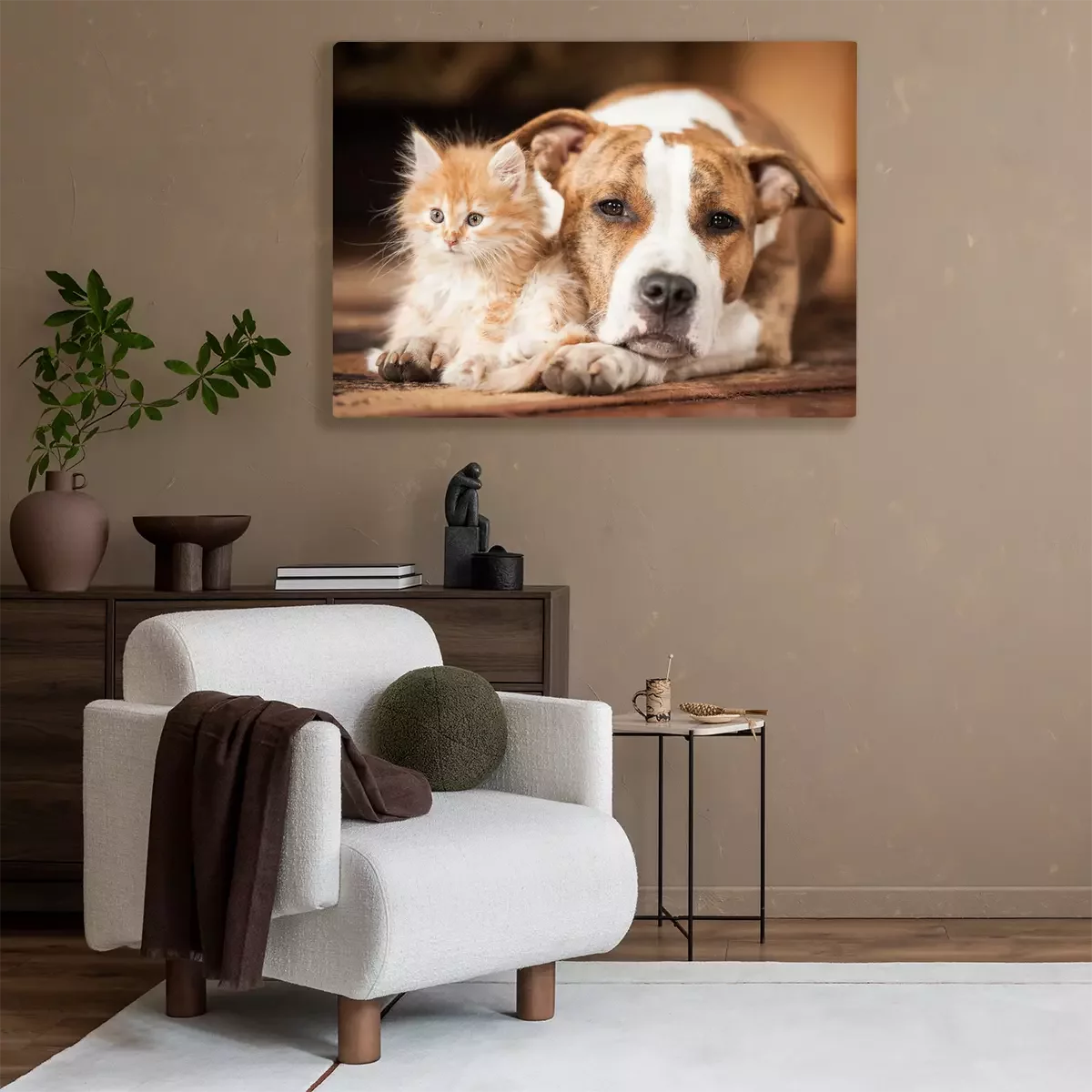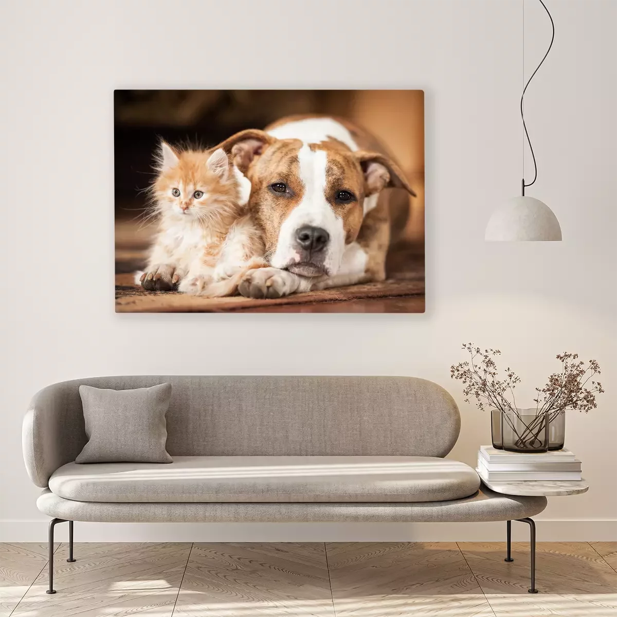 Tableau  Chat et chien côte à côte