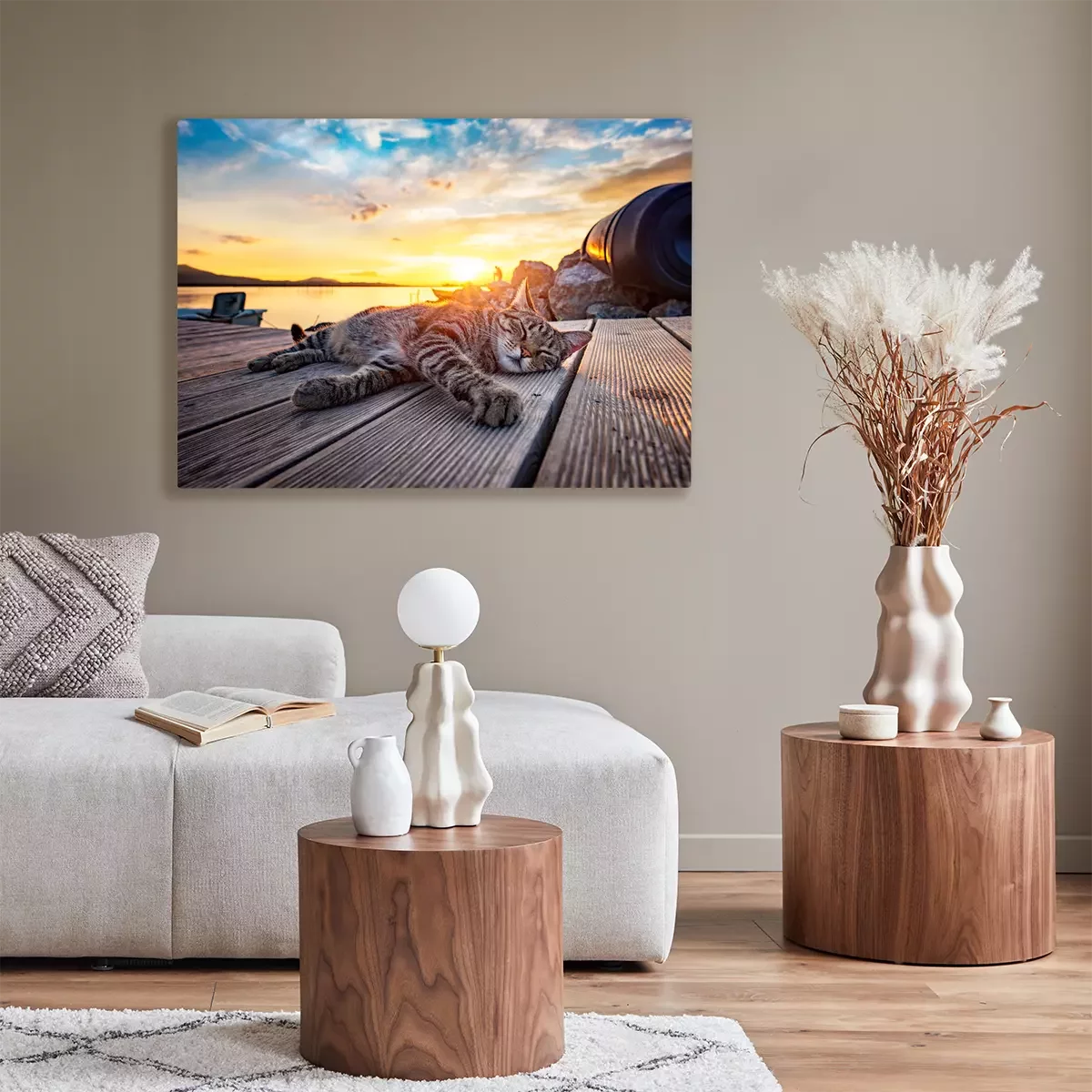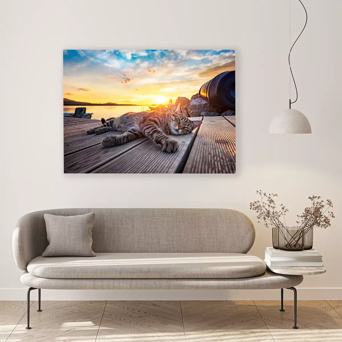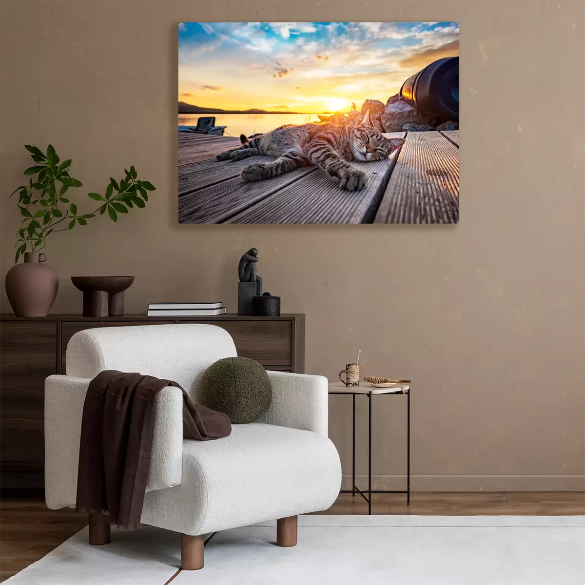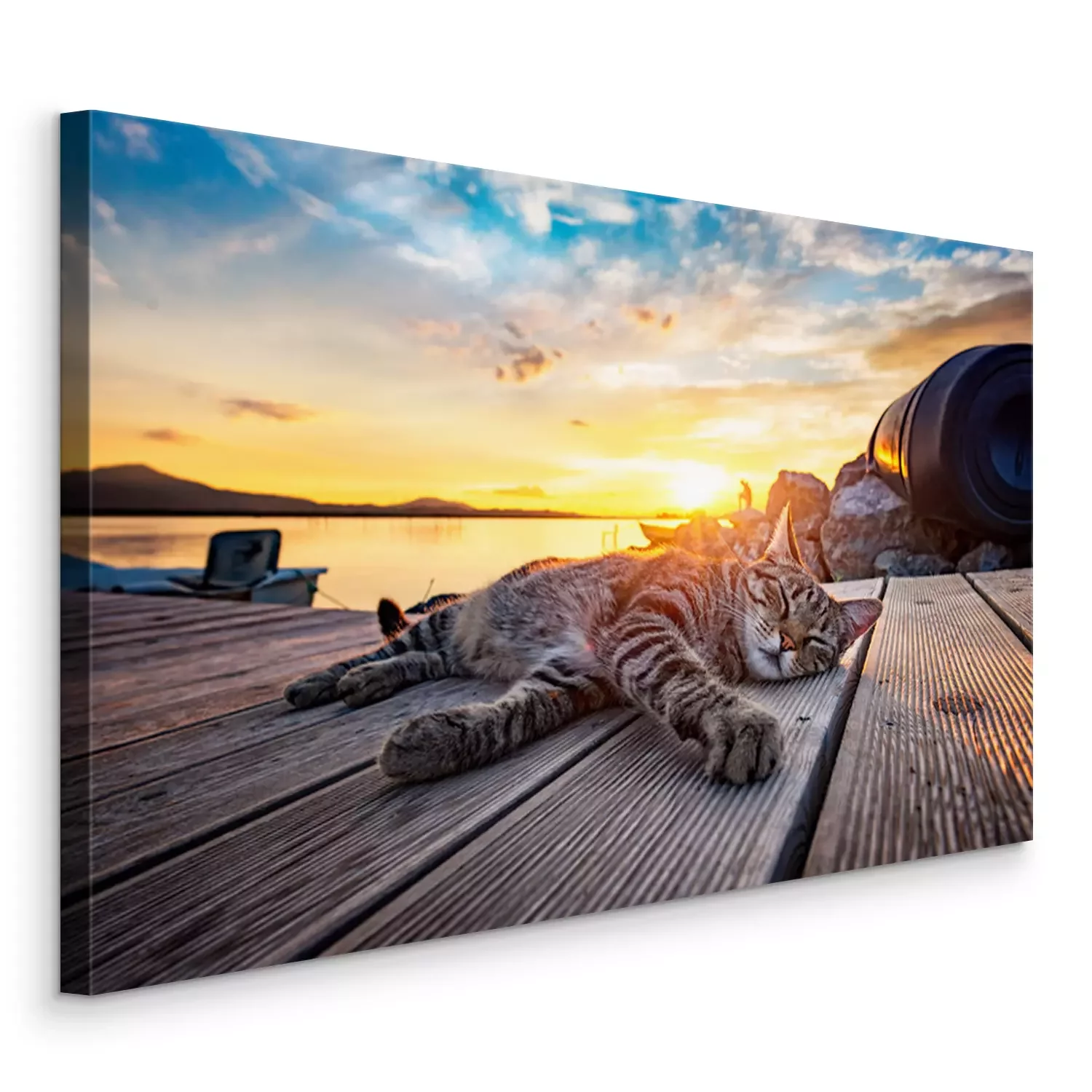 Tableau : Chat qui dort au coucher du soleil