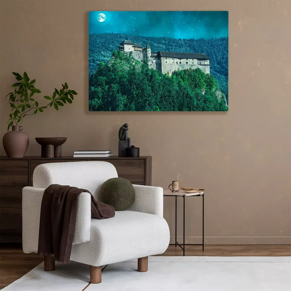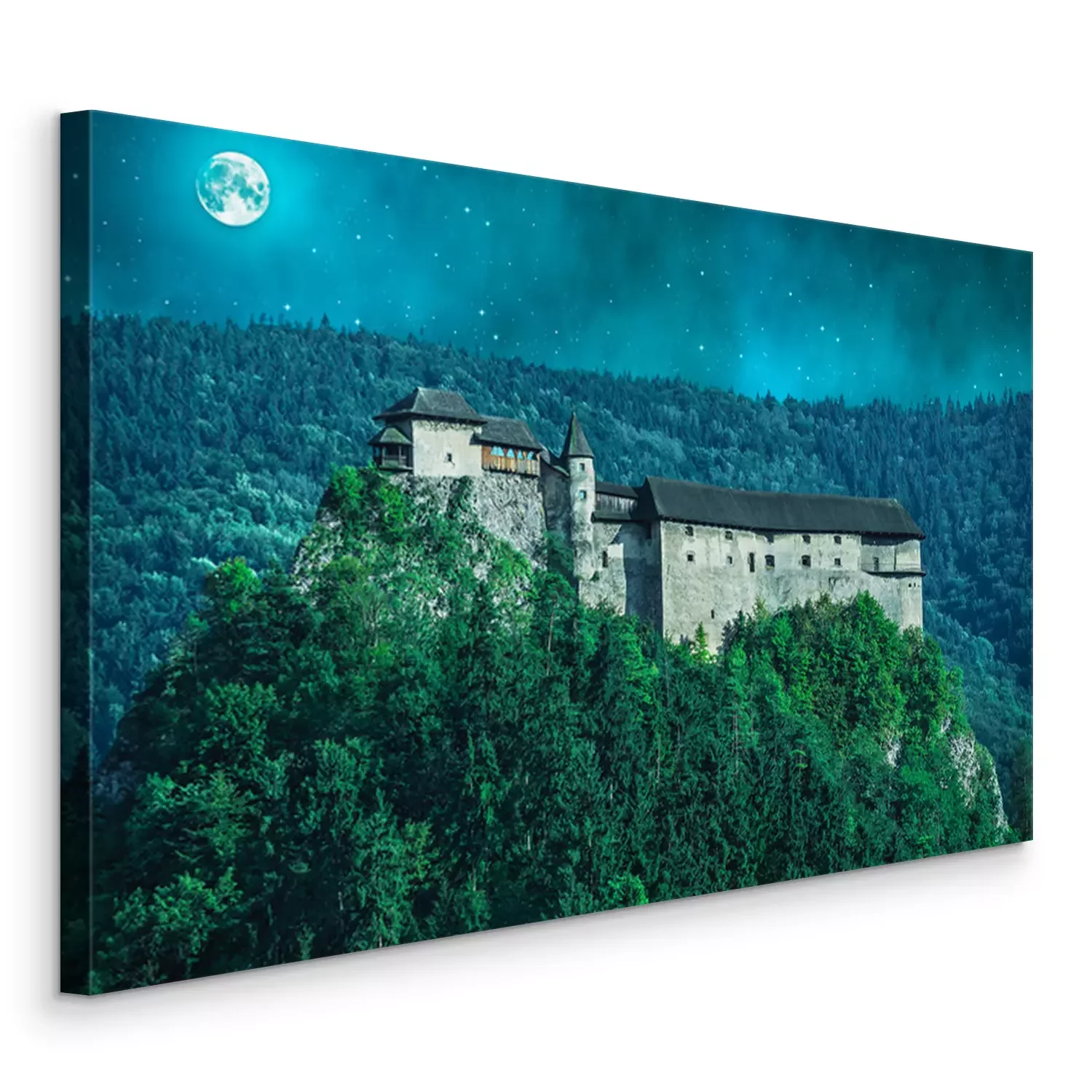 Tableau  Château effrayant dans une forêt la nuit avec la lune