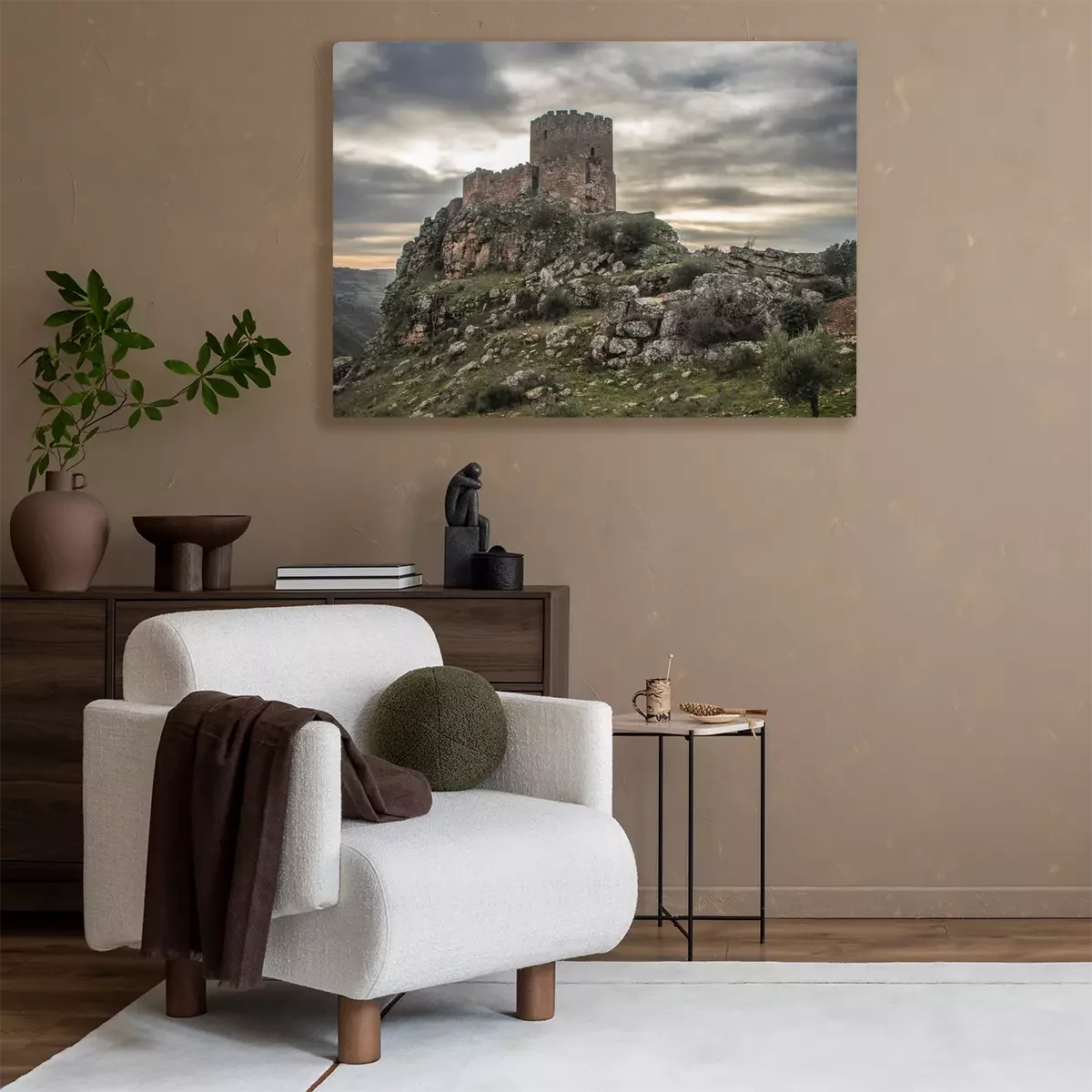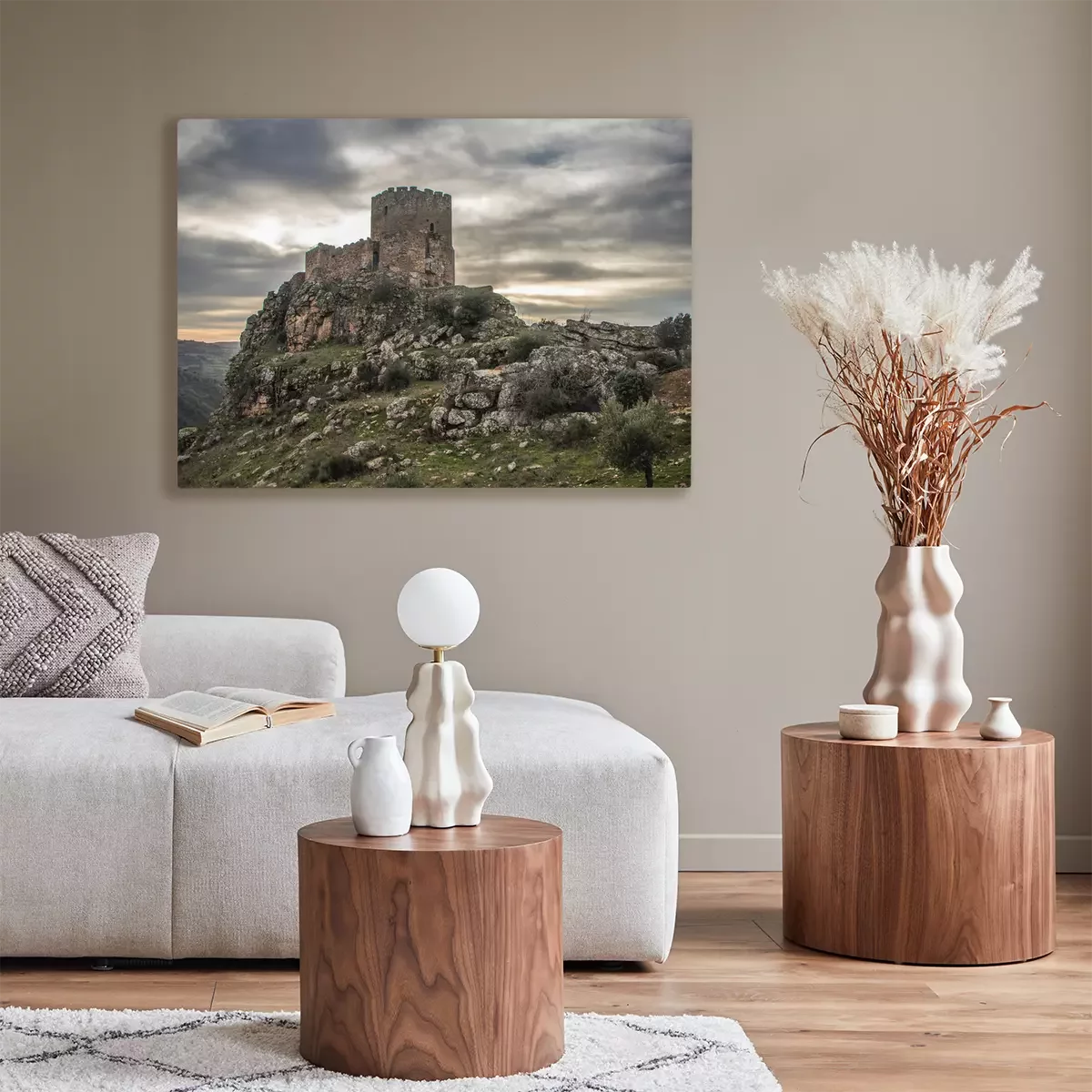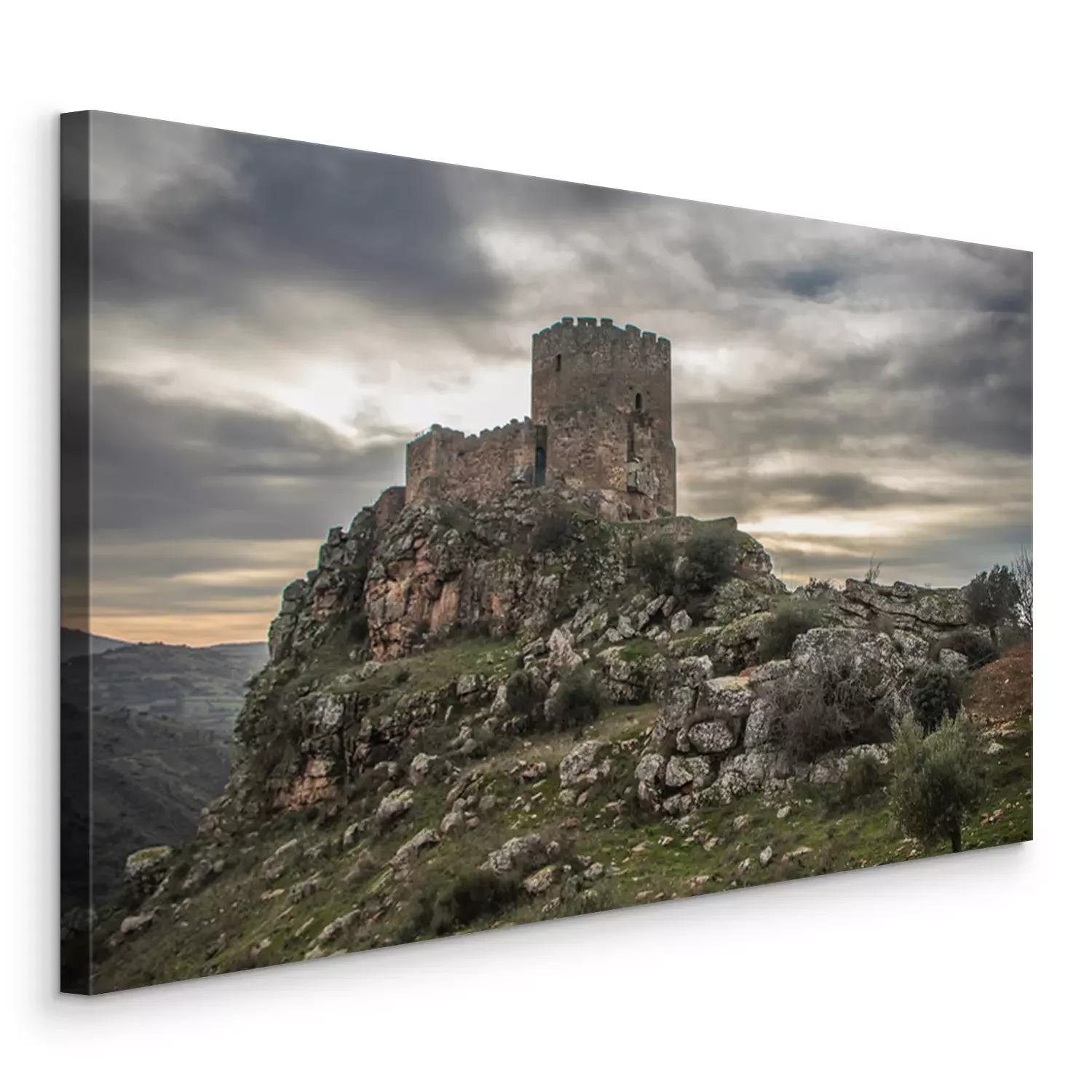 Tableau  Château médiéval sur une falaise par temps nuageux, Algoso, Vimioso, Miranda do Douro, Bragance, Tras-os-Montes, Portugal
