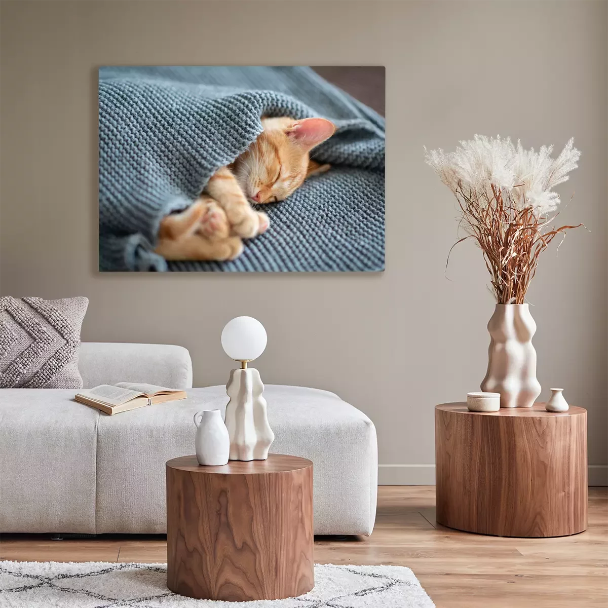 Tableau : Chaton roux enveloppé dans une couverture