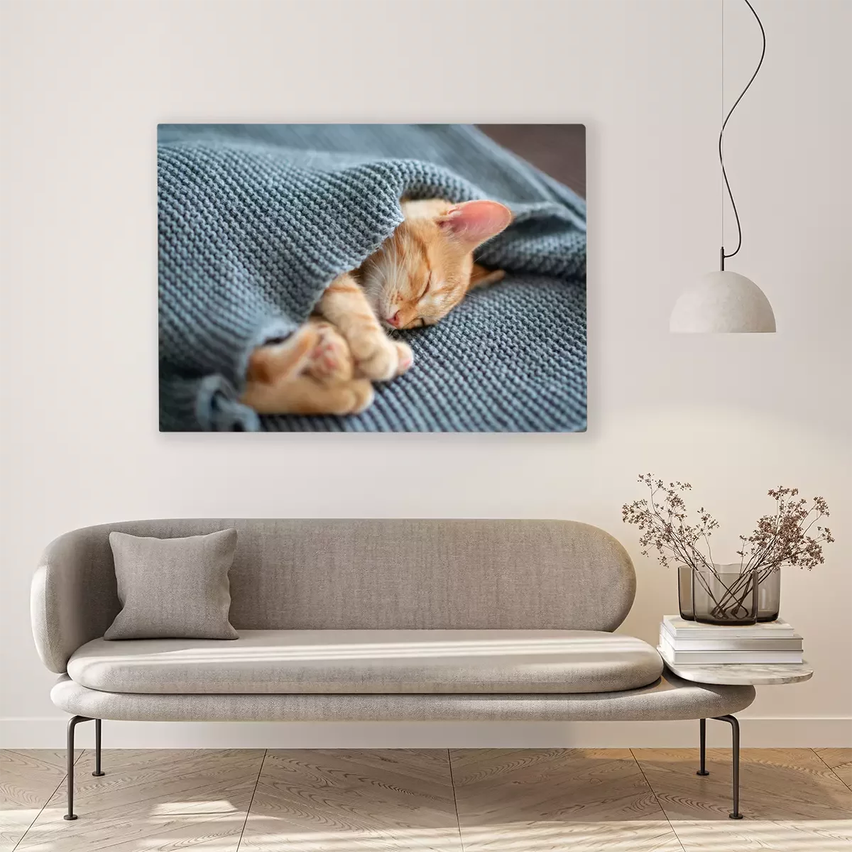 Tableau  Chaton roux enveloppé dans une couverture