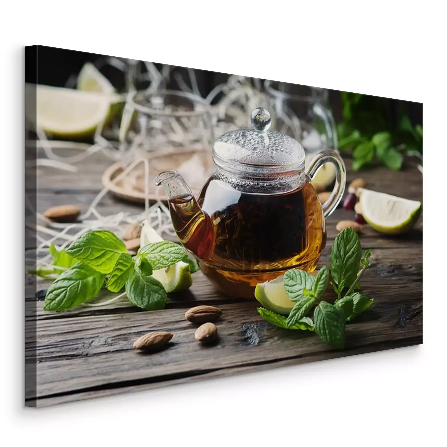 Tableau  Chaud, noir, thé, citron, menthe, bois, table