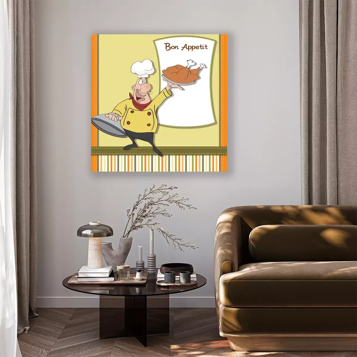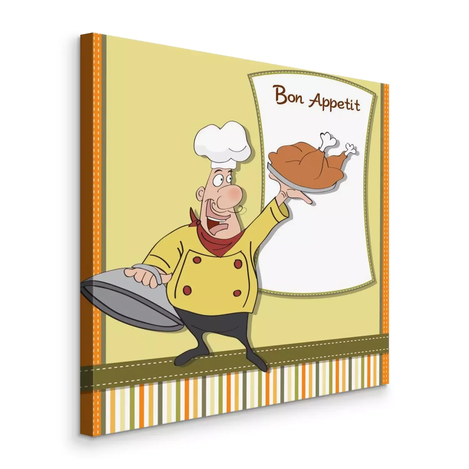 Tableau  chef drôle de bande dessinée avec plateau de nourriture dans la main