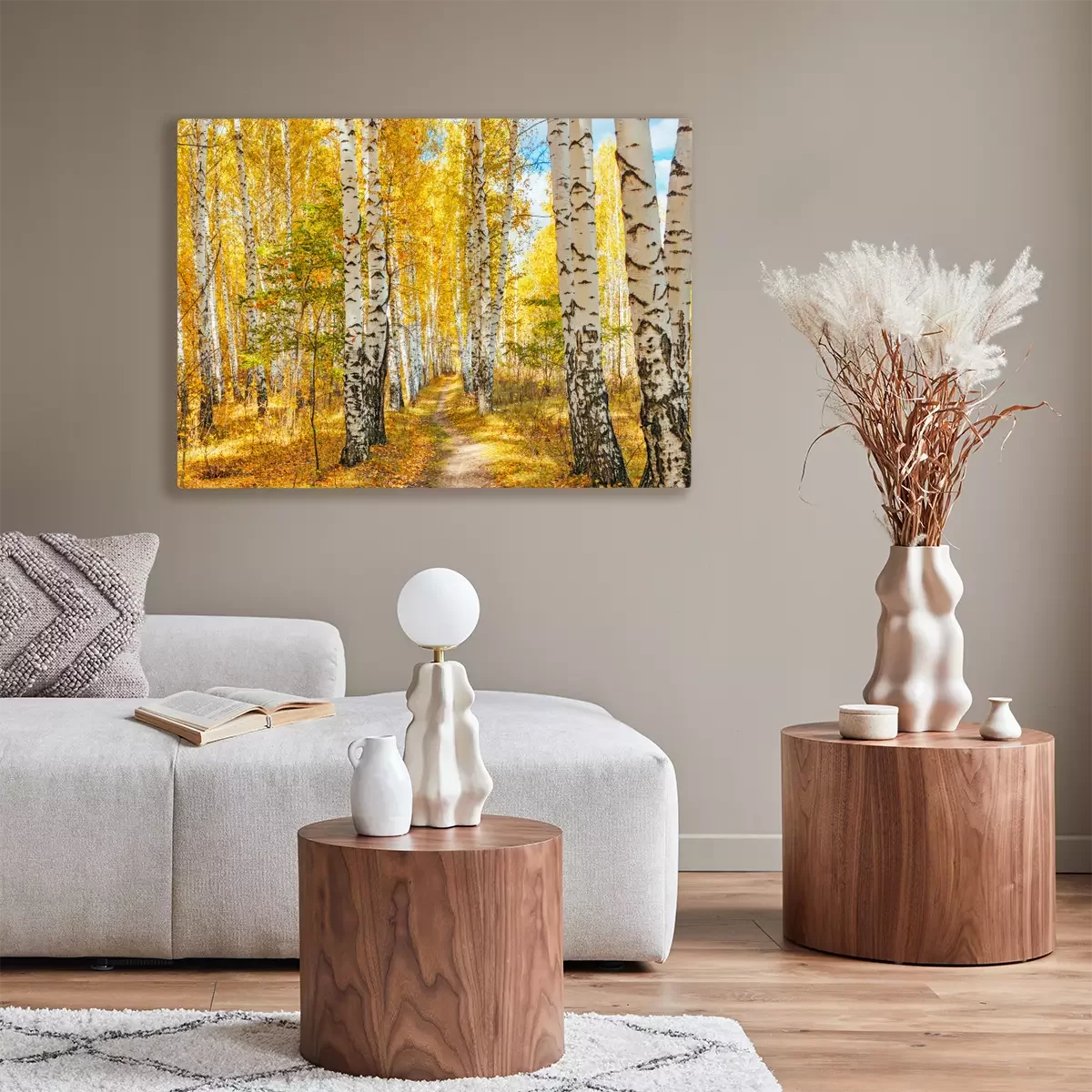 Tableau : Chemin dans la forêt de bouleaux d'automne