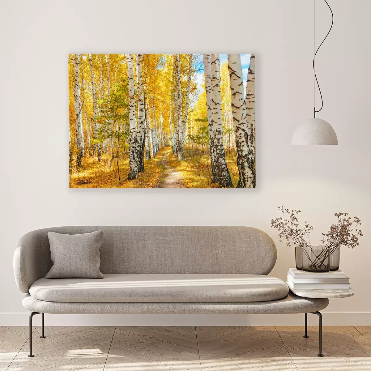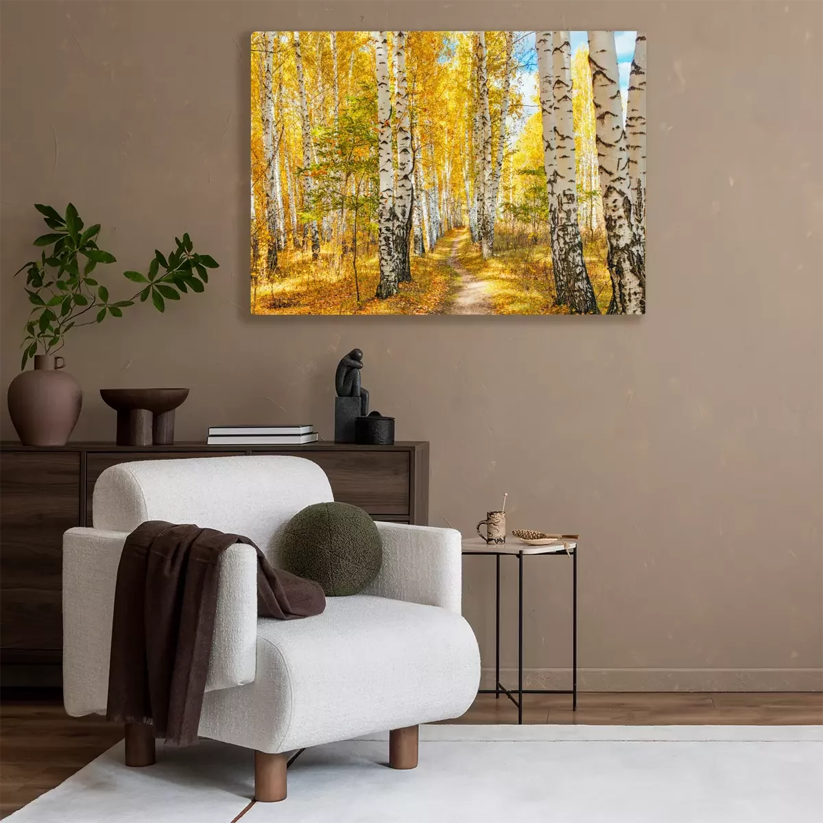 Tableau  Chemin dans la forêt de bouleaux d'automne