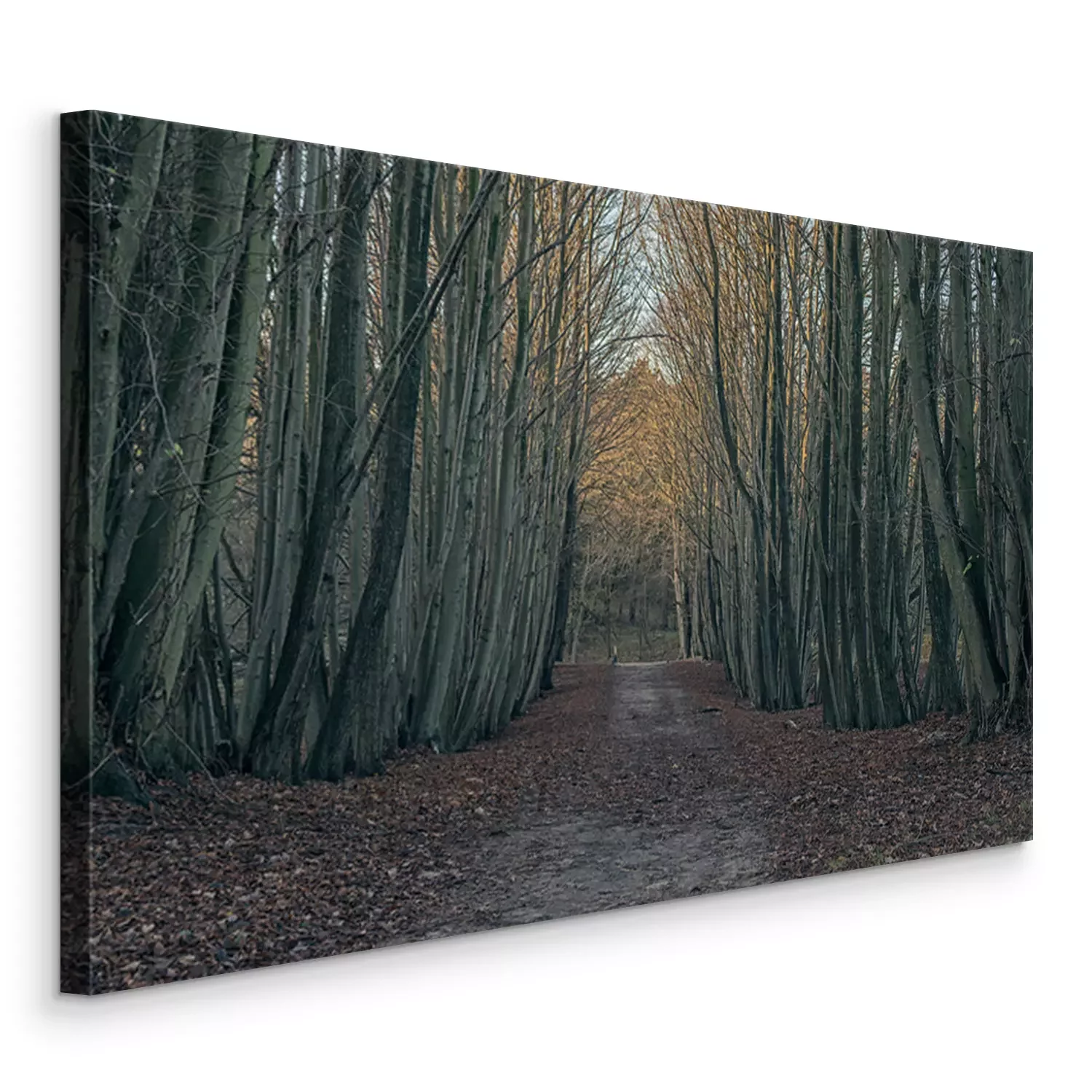 Tableau  Chemin de terre dans la forêt d'hiver.