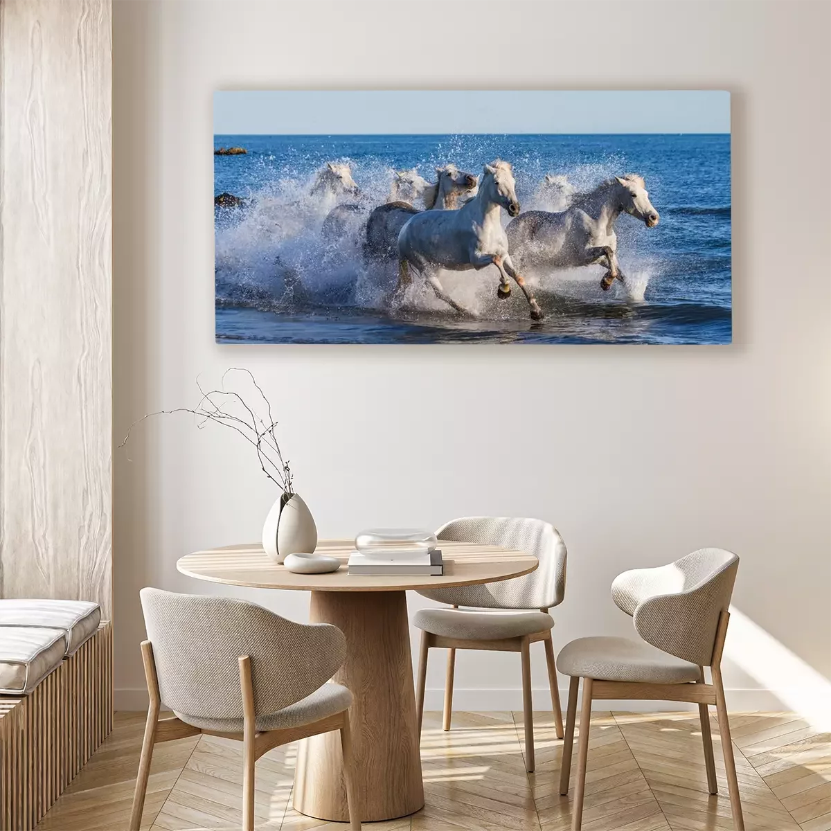 Tableau  Chevaux blancs au galop en bord de mer