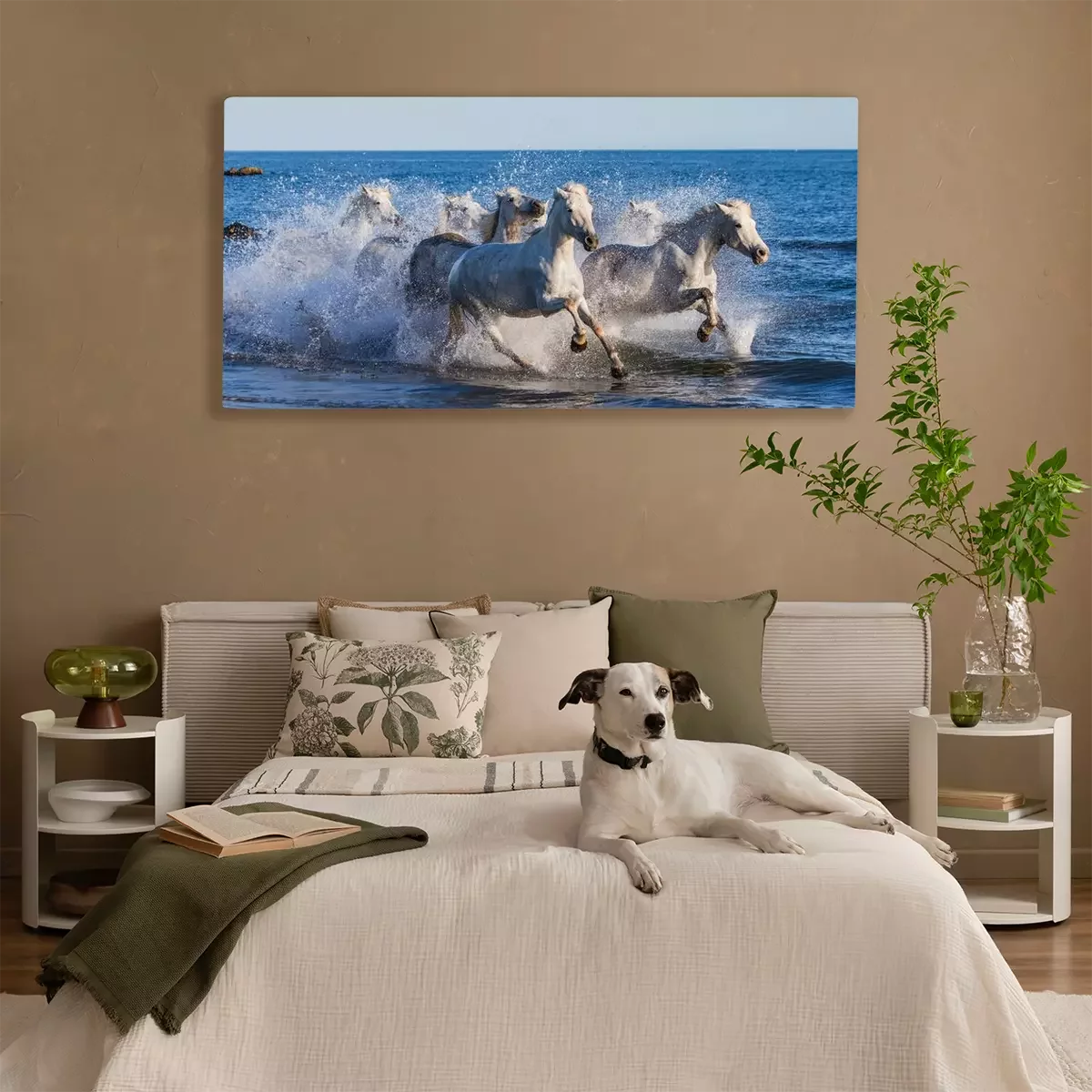 Tableau : Chevaux blancs au galop en bord de mer